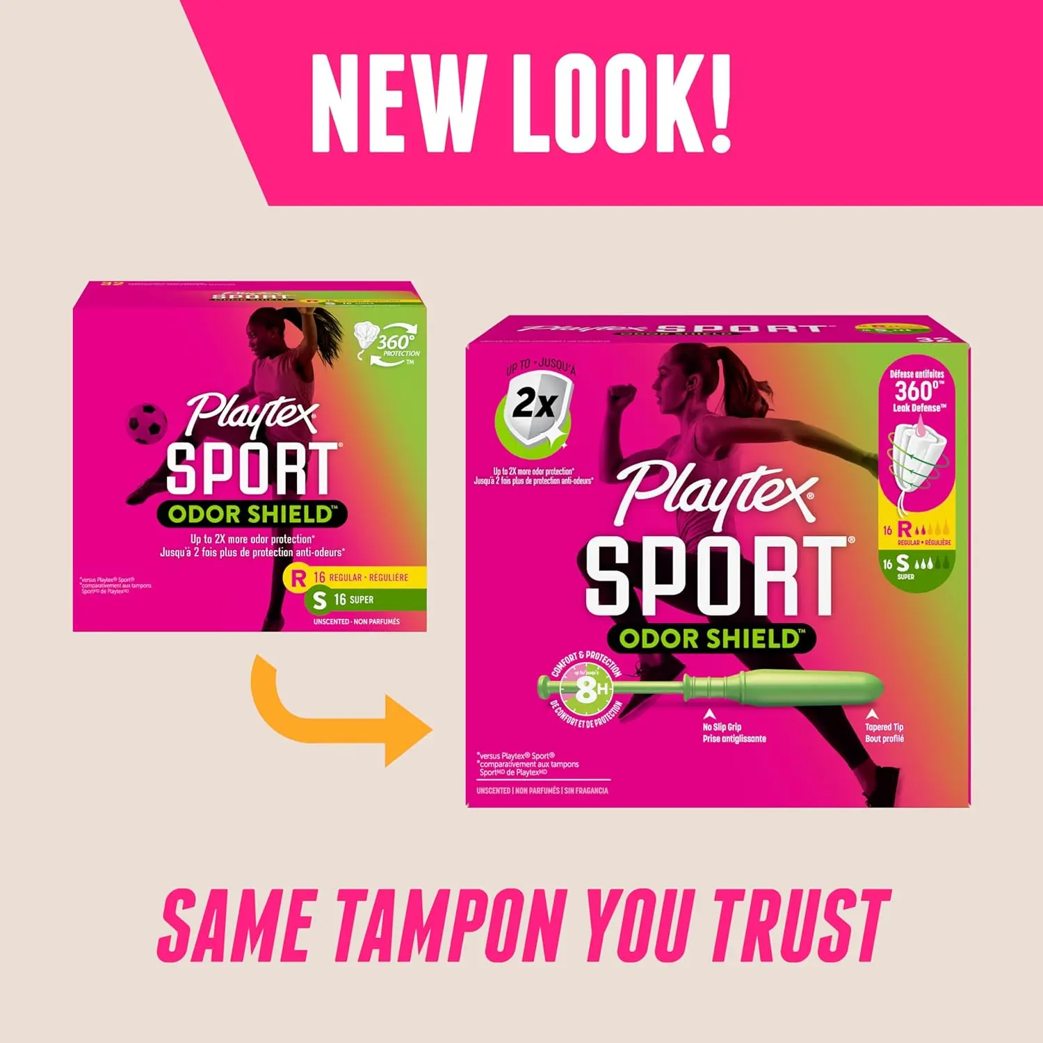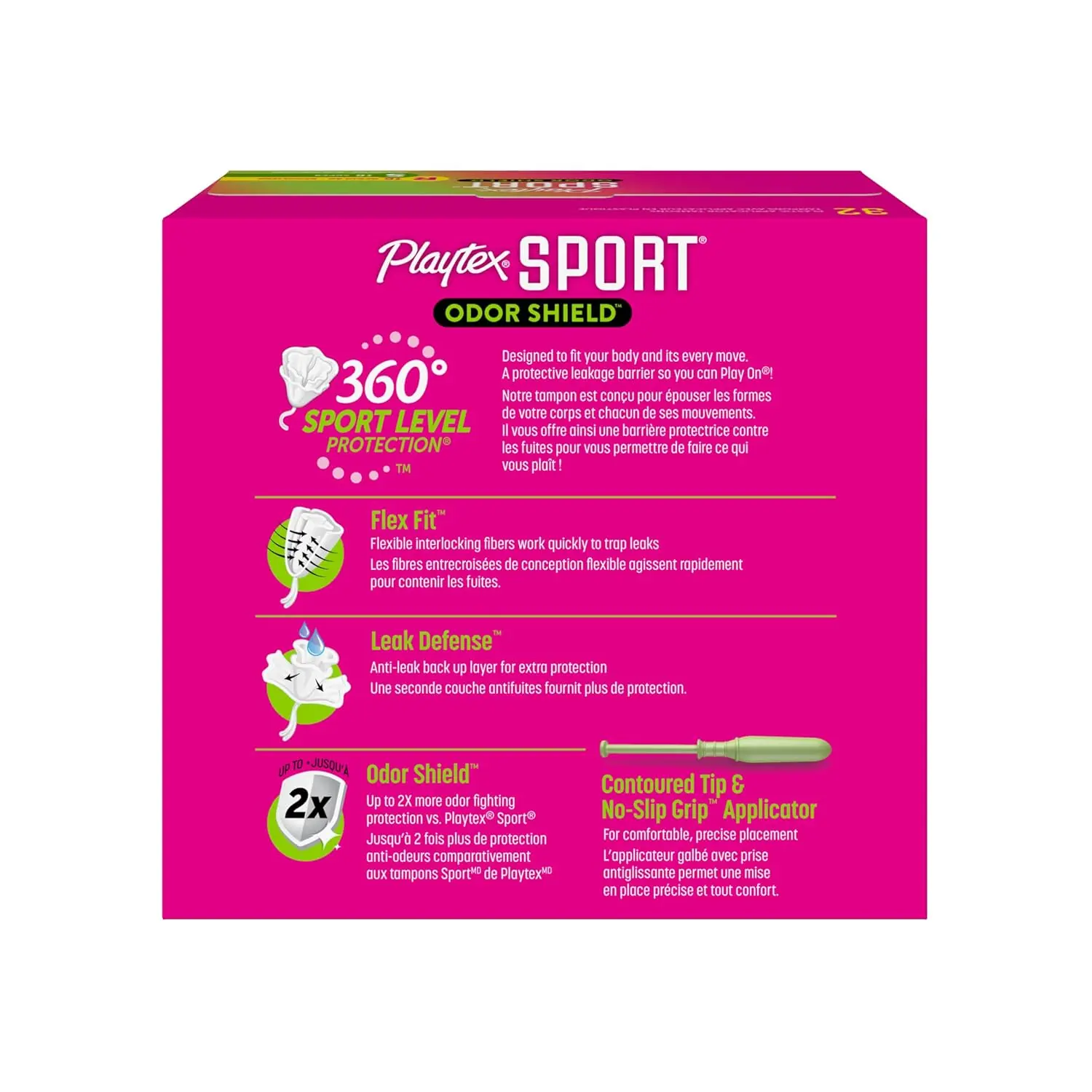 Stay confident and protected during your period with Playtex Sport Tampons, designed for active lifestyles. These tampons offer superior leak protection and odor control, so you can focus on your workout, game, or daily activities without worry. The unique Odor Shield technology neutralizes unwanted odors without masking your natural scent or interfering with any added fragrances you may be wearing. Feel fresh and clean all day long. The contoured applicator ensures comfortable and precise placement every time, making insertion easy and discreet. Playtex Sport Tampons feature Flexfit interlocking fibers, which work quickly to trap leaks and prevent accidents. This advanced design provides 360-degree protection, adapting to your body’s movements for a secure and reliable fit. Whether you’re running, swimming, or simply going about your day, Playtex Sport Tampons offer the ultimate combination of comfort, protection, and confidence. Don’t let your period hold you back – experience the difference with Playtex Sport.