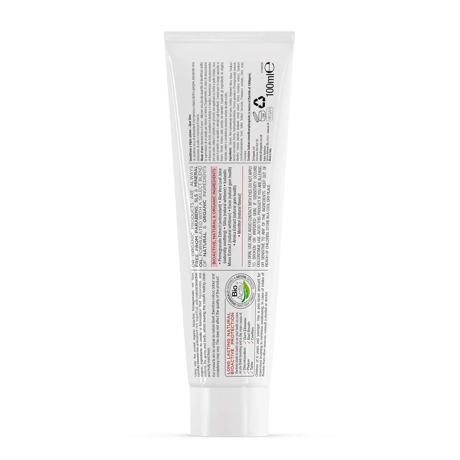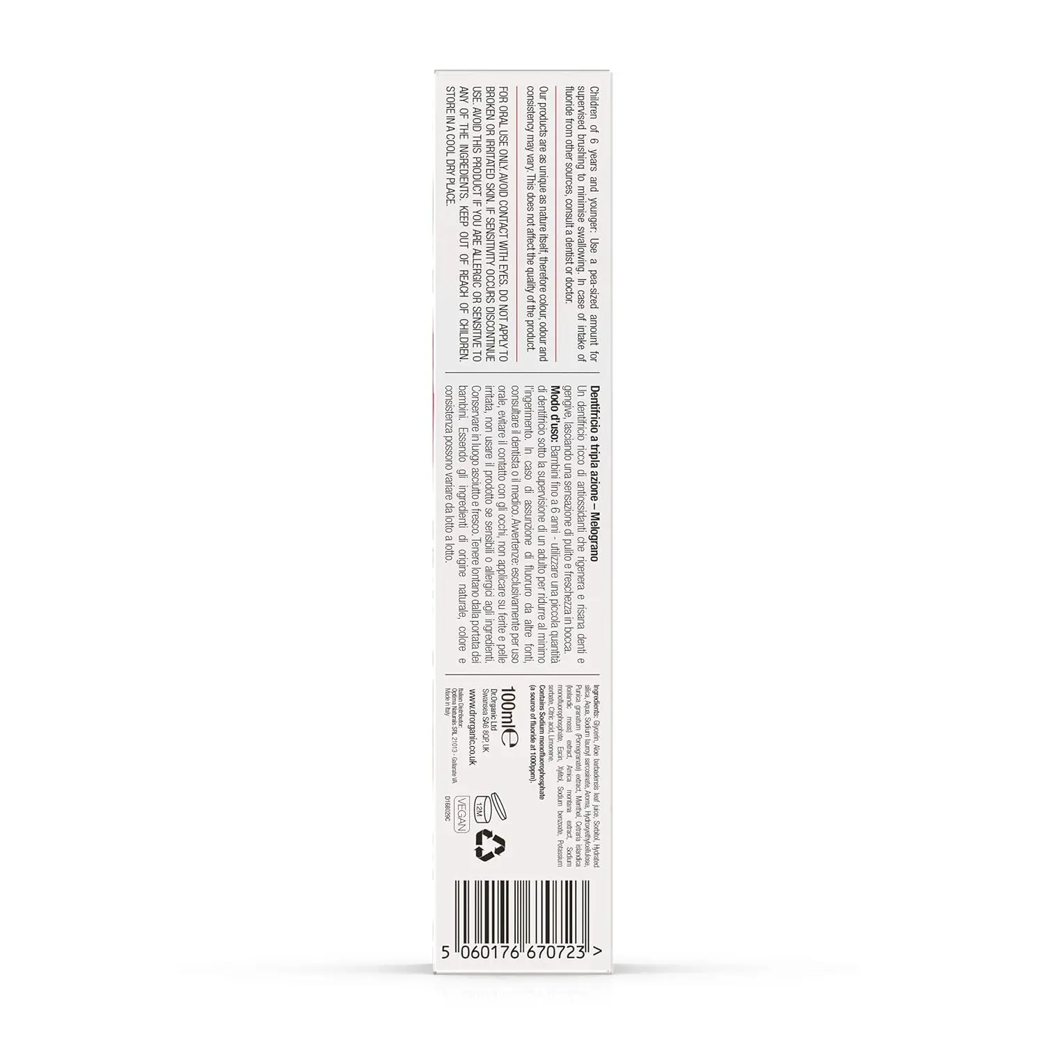 Unleash a brighter, healthier smile with our Pomegranate Whitening Toothpaste. This innovative formula is designed to gently yet effectively whiten teeth, revealing a radiant smile you’ll love. Beyond whitening, our toothpaste provides crucial anti-cavity protection, strengthening enamel and preventing decay. We believe in holistic oral care, that’s why this toothpaste also rejuvenates gums, promoting overall oral health and well-being. Plus, it’s formulated with vegetarian and vegan principles in mind, using plant-derived ingredients and avoiding animal products. Restore your smile’s natural beauty while maintaining a clear conscience. Experience the power of pomegranate for a naturally brighter, healthier, and more confident you. Feel the fresh, clean sensation and embrace a new level of oral care. This toothpaste is your daily essential for a dazzling and healthy smile, without compromising your values. Get ready to shine!