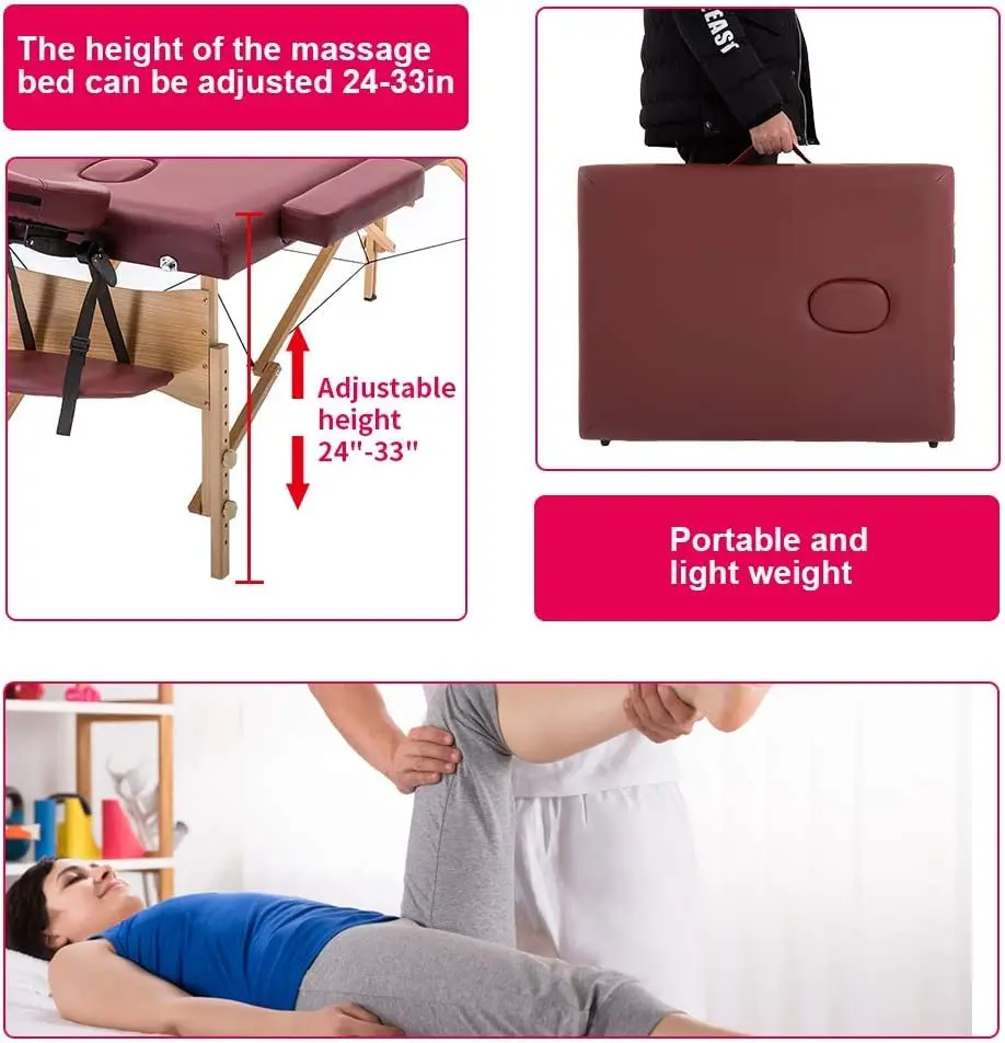 The thoughtful design extends to additional comfort features. The included armrest and handle pallet provide extra support and relaxation for your clients, allowing them to fully unwind and enjoy their massage experience. The waterproof and oil-proof PVC leather surface ensures easy cleaning and prevents stains, maintaining a pristine appearance. Furthermore, this massage bed is made with health-friendly materials, free from offensive odors often associated with synthetic products, ensuring a safe and pleasant environment for both the user and the therapist. Invest in this Portable Massage Table and elevate your massage practice or create a spa-like experience in the comfort of your own home.