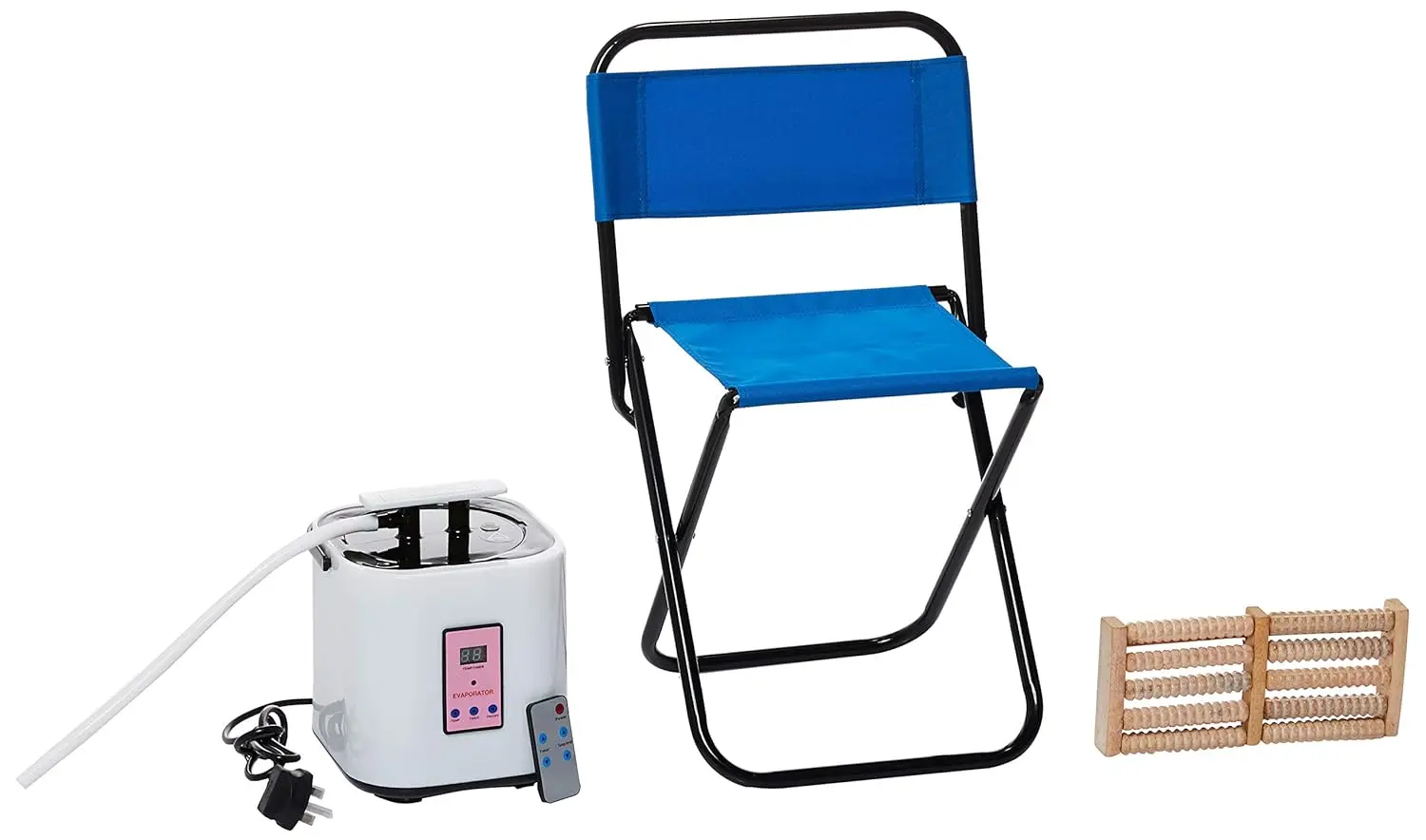 • Complete sauna tent kit with chair and wooden foot roller massager.