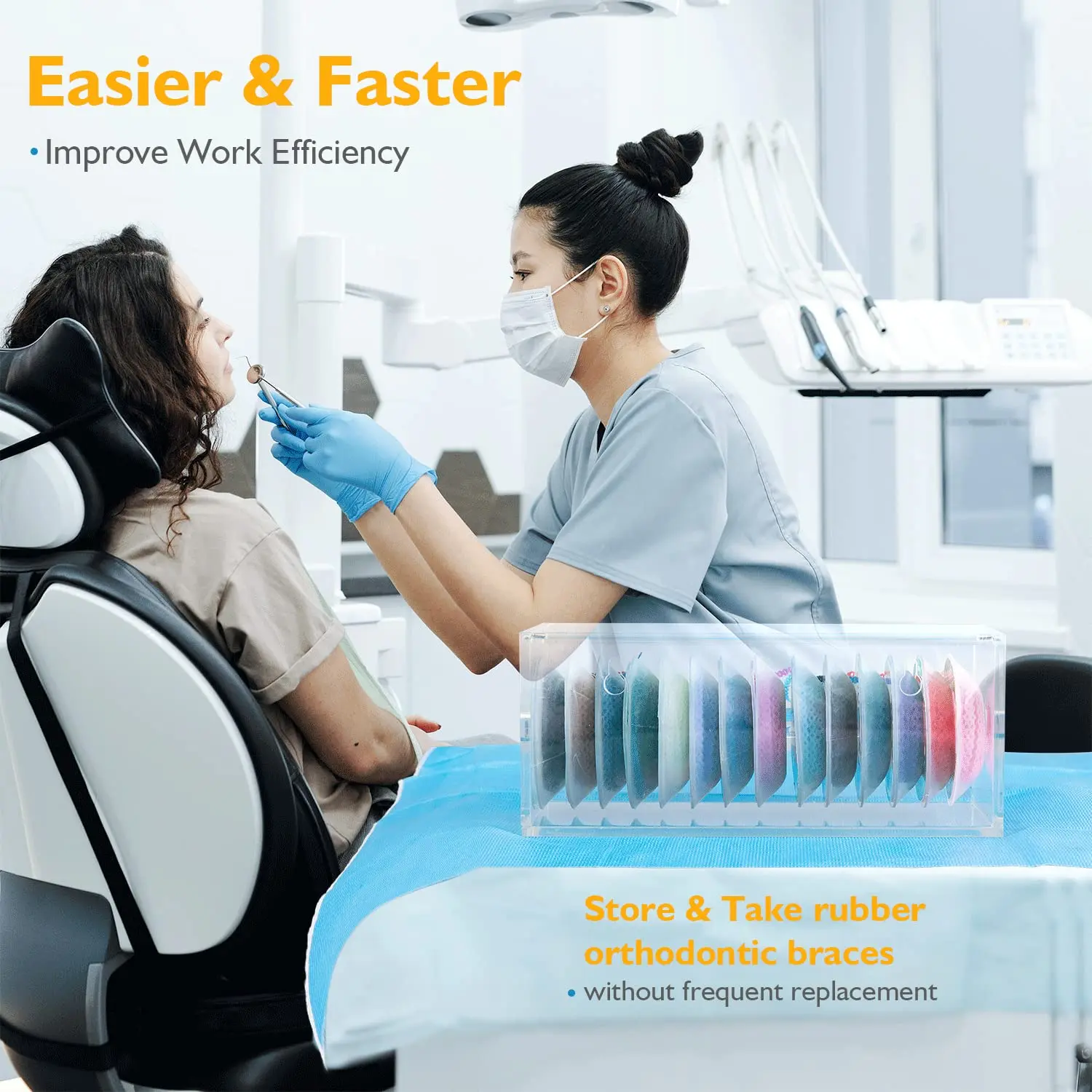 • Easy to store and take rubber orthodontic braces.