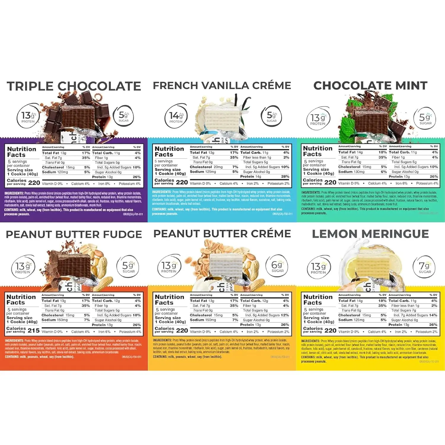 • Flavors: Chocolate Mint, Peanut Butter Creme, Triple Chocolate, Peanut Butter Fudge, French Vanilla Creme, Lemon Meringue