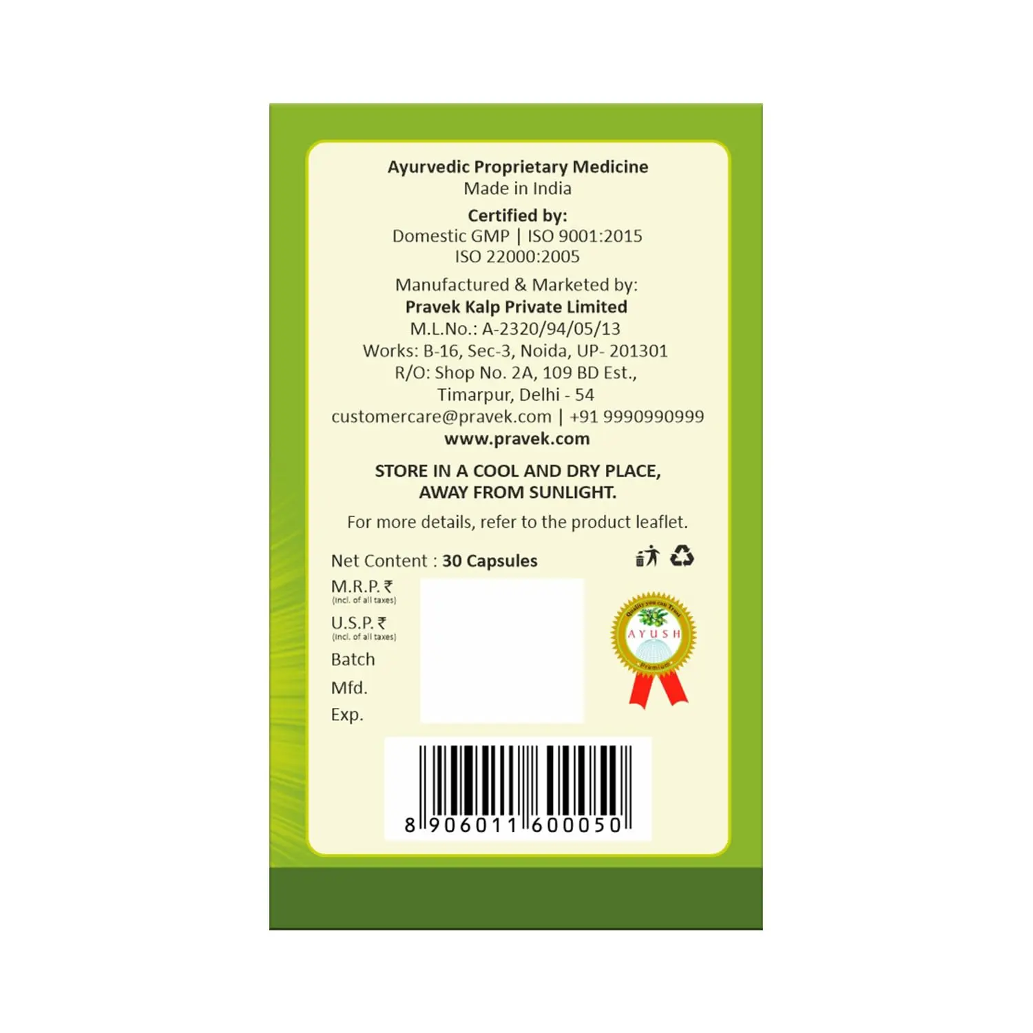 • Made in India in a GMP & ISO certified facility