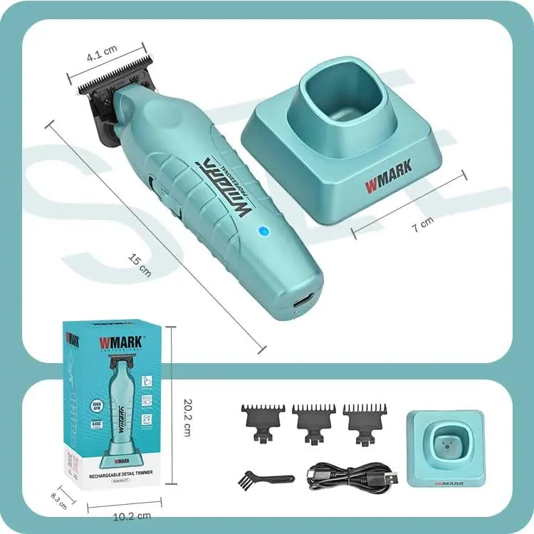 Achieve precision grooming with the Pro Detail Trimmer. This professional-grade trimmer is engineered with a powder-coated metal and ceramic moving blade, delivering unparalleled accuracy for barbers and home users alike. Perfect for creating detailed hairstyles, edging, outlining, dry shaving, and light shaping. The super-sharp, ultra-thin 0mm T-blade ensures an exceptionally close cut, ideal for zero-gap results. Powered by a high-speed 7,000 RPM motor, the ceramic T-blade effortlessly carves through any hair type and length. The included charging stand provides convenient storage and charging, ensuring your trimmer is always ready for action. The 1200mAh lithium battery offers approximately 180 minutes of use on a full 3-hour charge. Its lightweight ergonomic design, weighing only 160 grams, allows for comfortable, prolonged use. Featuring a powerful FF-280PA high-speed rotary motor, this trimmer tackles any hair type with ease. The Type-C USB-C charging interface and included charging dock/stand offer hassle-free charging. The LED indicator light keeps you informed about battery status. The powder metallurgy blades ensure durability, sharpness, and precision. **Please Note:** This trimmer features a super-thin, 0mm blade; avoid pressing against the skin.