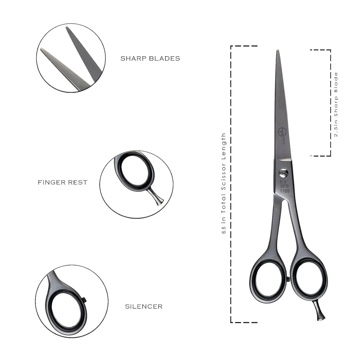 Pro Hair Scissors for Men & Women, 6.5 Inch