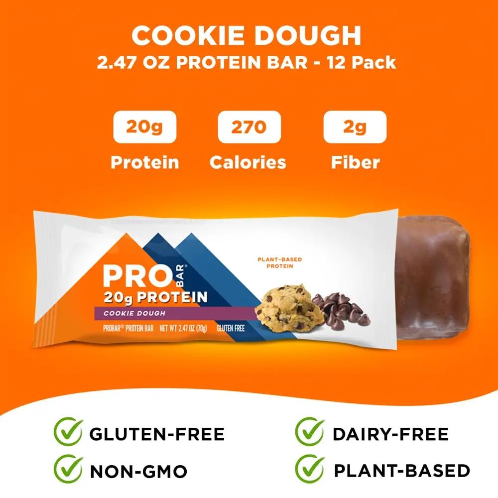 Fuel your body with the delicious and nutritious PROBAR Cookie Dough Protein Bar! This plant-based protein bar is packed with 20g of protein per serving, helping you power through your workouts and keep you feeling full and satisfied. It’s a guilt-free indulgence that satisfies your cookie dough cravings while providing essential nutrients. The PROBAR Cookie Dough Protein Bar is crafted with sustainably-sourced, gluten-free ingredients, making it a healthy and convenient snack for anyone following a gluten-free diet. Enjoy the added benefits of 4g of fiber, which promotes digestive health and helps you stay fuller longer. Plus, it contains chia and flax seeds, providing a source of Omega-3 fatty acids and natural fiber. Rest assured knowing that all PROBAR products are Non-GMO Project Verified, ensuring you’re getting a wholesome and natural snack. Indulge in the taste of cookie dough without the guilt, knowing you’re nourishing your body with a protein-packed, fiber-rich, and gluten-free bar. Whether you’re hitting the gym, need a mid-afternoon pick-me-up, or simply craving a healthy and delicious snack, the PROBAR Cookie Dough Protein Bar is the perfect choice. Each bar contains less than 300mg of cholesterol. Choose the PROBAR Cookie Dough Protein Bar and experience the perfect blend of taste and nutrition. Enjoy the convenience of a ready-to-eat protein bar that fits seamlessly into your active lifestyle. Make PROBAR your go-to snack for a boost of energy and essential nutrients.