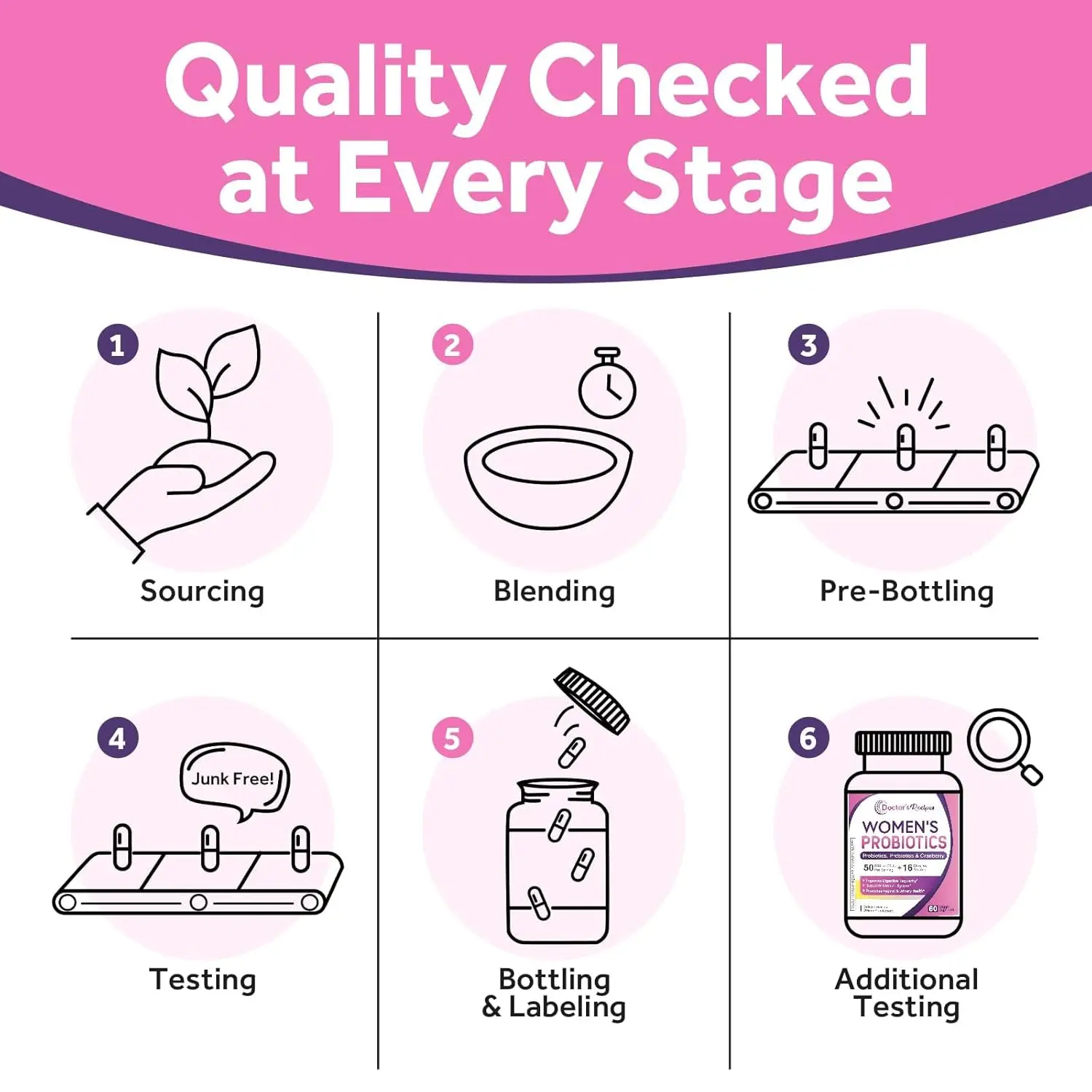 Support your gut health and overall well-being with Doctor’s Recipes Probiotic for Women, a powerful formula designed specifically for women’s unique needs. Each capsule delivers a potent 50 Billion CFUs (Colony Forming Units) of 16 carefully selected probiotic strains, working synergistically to promote digestive balance, immune function, and vaginal health. This comprehensive probiotic blend helps restore and maintain a healthy gut microbiome, combating occasional bloating, gas, and discomfort. Doctor’s Recipes Probiotic for Women supports nutrient absorption, boosts energy levels, and enhances the body’s natural defenses. Crafted with high-quality ingredients and rigorously tested for purity and potency, our probiotic is free from artificial colors, flavors, and preservatives. It’s also gluten-free, dairy-free, and non-GMO, making it suitable for a wide range of dietary preferences. Experience the difference of a balanced gut with Doctor’s Recipes Probiotic for Women and unlock your body’s full potential. This formula is designed to ensure that a high number of live cultures reach your intestinal tract. It is a must add to your health routine.