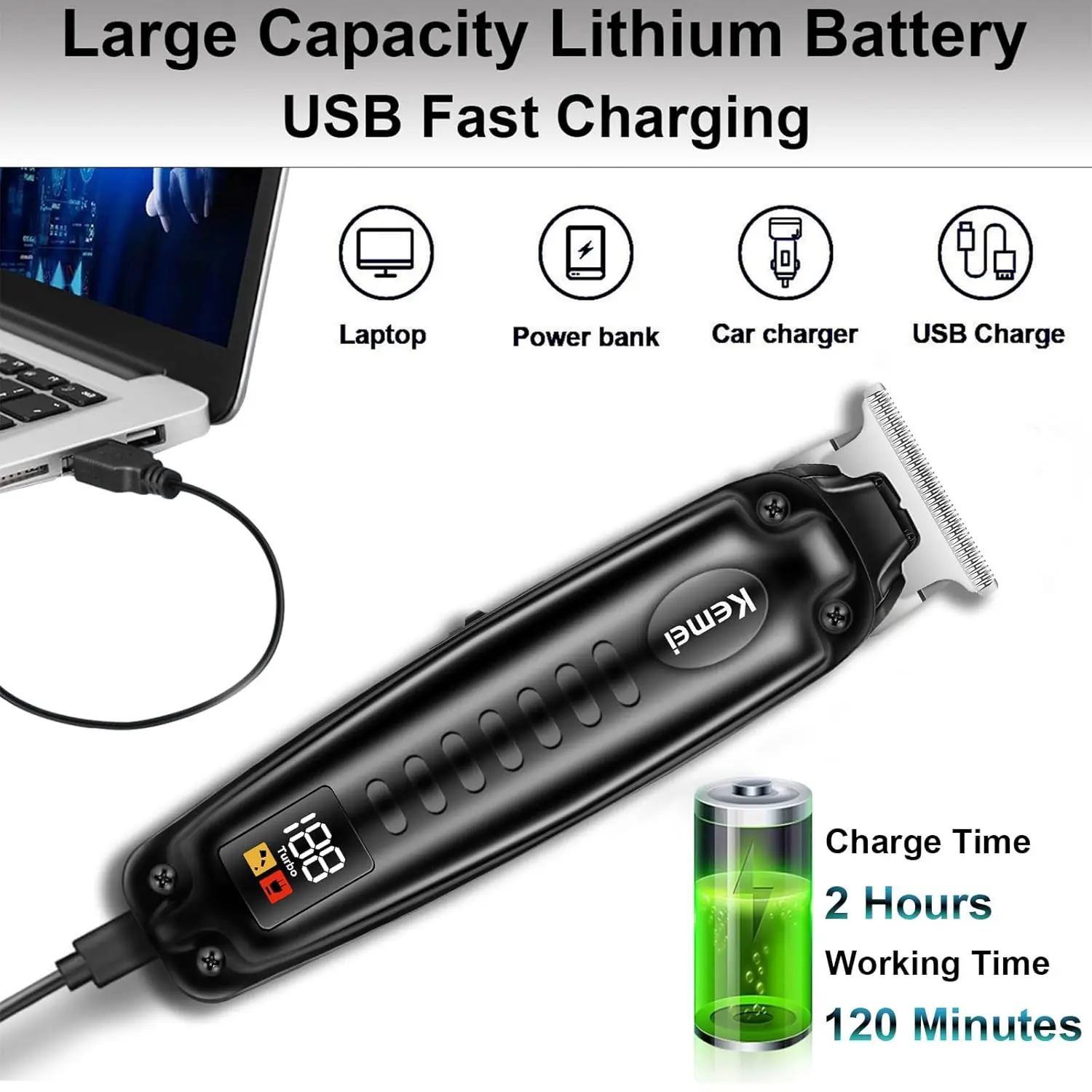 Achieve professional-quality haircuts at home with this versatile and powerful hair clipper. Designed for men, this cordless trimmer features precision stainless steel blades that are self-sharpening for long-lasting sharpness and durability. It effortlessly handles all hair types, whether wet or dry, long or short, providing a comfortable and smooth cutting experience. Create fades, blends, and artistic styles with ease using the included guide combs in various sizes. Whether you’re a professional barber or cutting your own hair, this kit allows you to achieve stylish looks. Enjoy the convenience of USB fast charging. The built-in high-capacity lithium-ion battery provides up to 120 minutes of runtime after just a 2-hour charge. The worldwide USB charging compatibility makes it perfect for use at home or while traveling. The clipper is equipped with an advanced motor that delivers ample power and speed, all while maintaining a quiet operation at no more than 65 decibels. This ensures a peaceful trimming experience without disturbing others. This electric trimmer is not just for hair; it’s also ideal for trimming beards and body hair, making it a truly versatile grooming tool. It makes a thoughtful and practical gift for yourself, your boyfriend, husband, father, son, or any friend who values looking their best.