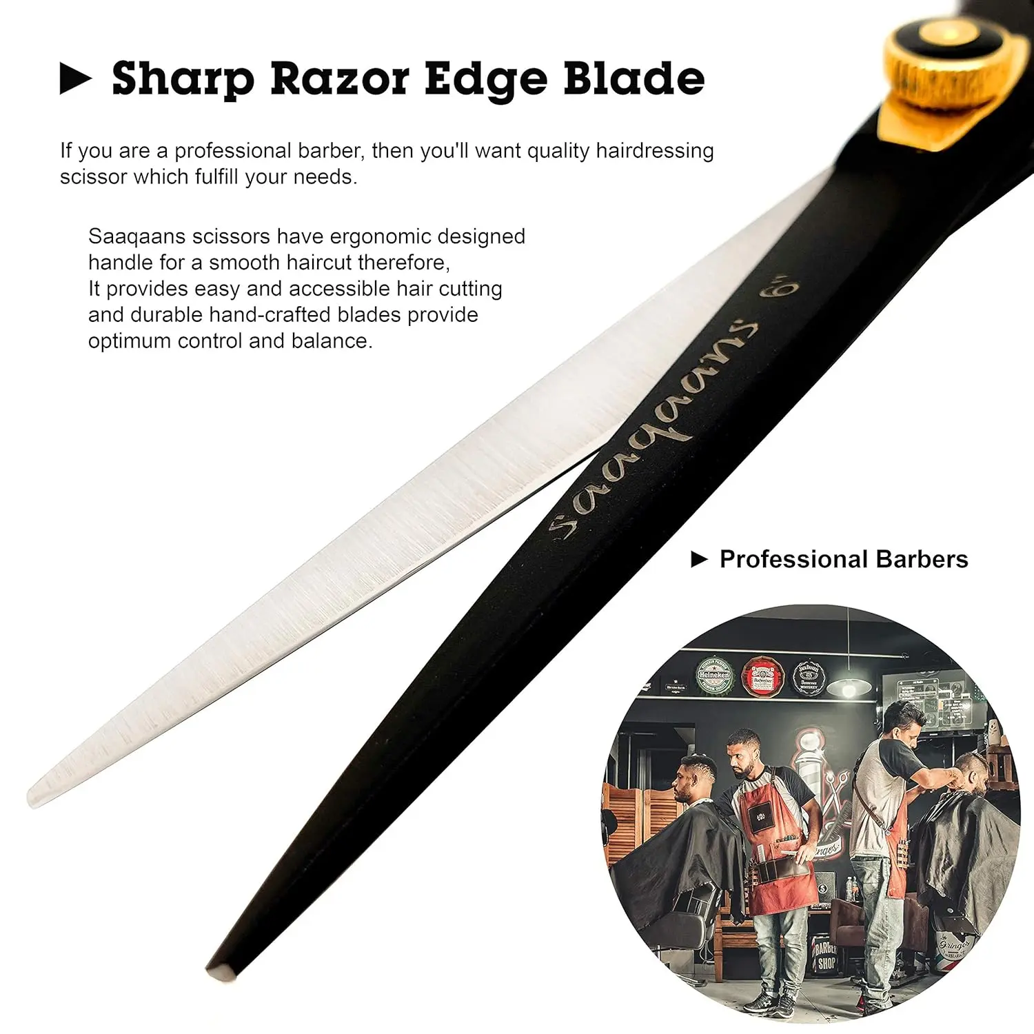 Experience professional-grade haircuts from the comfort of your home with the Saaqaans Professional Hairdressing Scissor. This 6-inch, right-handed scissor is meticulously crafted from premium quality hard stainless steel, ensuring exceptional durability and long-lasting sharpness. Its ergonomic design provides a comfortable grip, making it ideal for both salon professionals and home users. The razor-sharp blades are hand-sharpened to effortlessly trim hair with precision, reducing pulling and snagging. Whether you’re styling men’s, women’s, or children’s hair, these versatile shears deliver remarkable performance. The smooth stainless steel surface prevents hair from getting caught between the blades, minimizing mess and maximizing efficiency. Featuring an adjustable tension screw, you can customize the scissor’s feel to your preference, ensuring a perfect cut every time. Invest in a tool that will elevate your hairstyling experience. This scissor’s exceptional sharpness and smooth cutting action will make you wonder how you ever managed without it. The superior quality steel ensures that the blades remain sharp for an extended period, minimizing the need for frequent sharpening. Experience the difference that a professional-grade scissor can make.