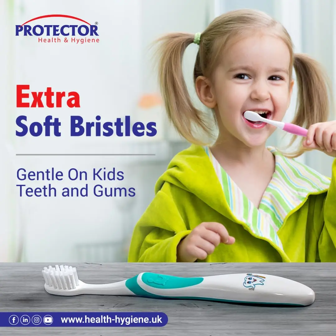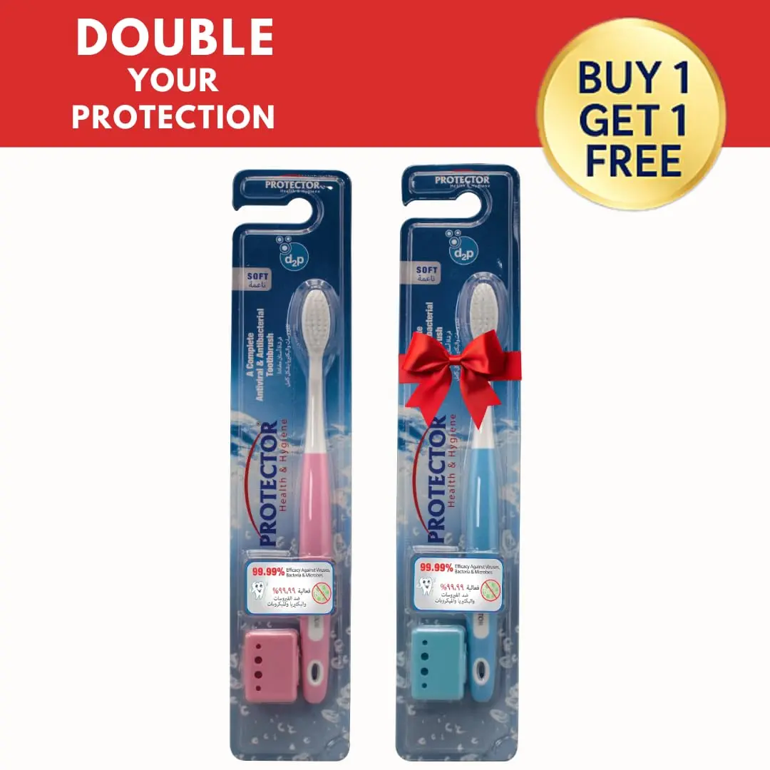 Give your child the gift of a healthy and happy smile with the Protector Kids Toothbrush! This innovative toothbrush provides advanced protection against viruses, bacteria, and microbes, shielding their delicate mouths with 99.99% effectiveness. From bristles to handle, the Protector Kids Toothbrush is built with protection in mind, offering daily defense for growing smiles. Extra-soft bristles gently clean developing teeth and gums without causing discomfort. The kid-friendly grip makes brushing easy and fun for little hands, encouraging good oral hygiene habits from a young age. Its design allows it to reach all the hard-to-reach areas ensuring a thorough clean that parents can trust. The included toothbrush cover keeps the brush clean and fresh. Unlike ordinary covers, Protector’s antimicrobial technology helps prevent microbial buildup and its smart ventilation reduces moisture. Protector cover shields your toothbrush from airborne germs, bathroom splashes, and external contamination – keeping it consistently clean, fresh, and protected between uses. Tested and certified by international laboratories and endorsed by leading dentists in the UAE, the Protector Kids Toothbrush is a trusted hygiene solution developed by Health & Hygiene (UK), a global leader in antiviral and antibacterial oral care. Parents love the peace of mind it provides, while kids adore the fun and comfortable brushing experience. Trust Protector – the hygiene brand preferred by parents, loved by kids, and backed by science for safe and happy smiles!