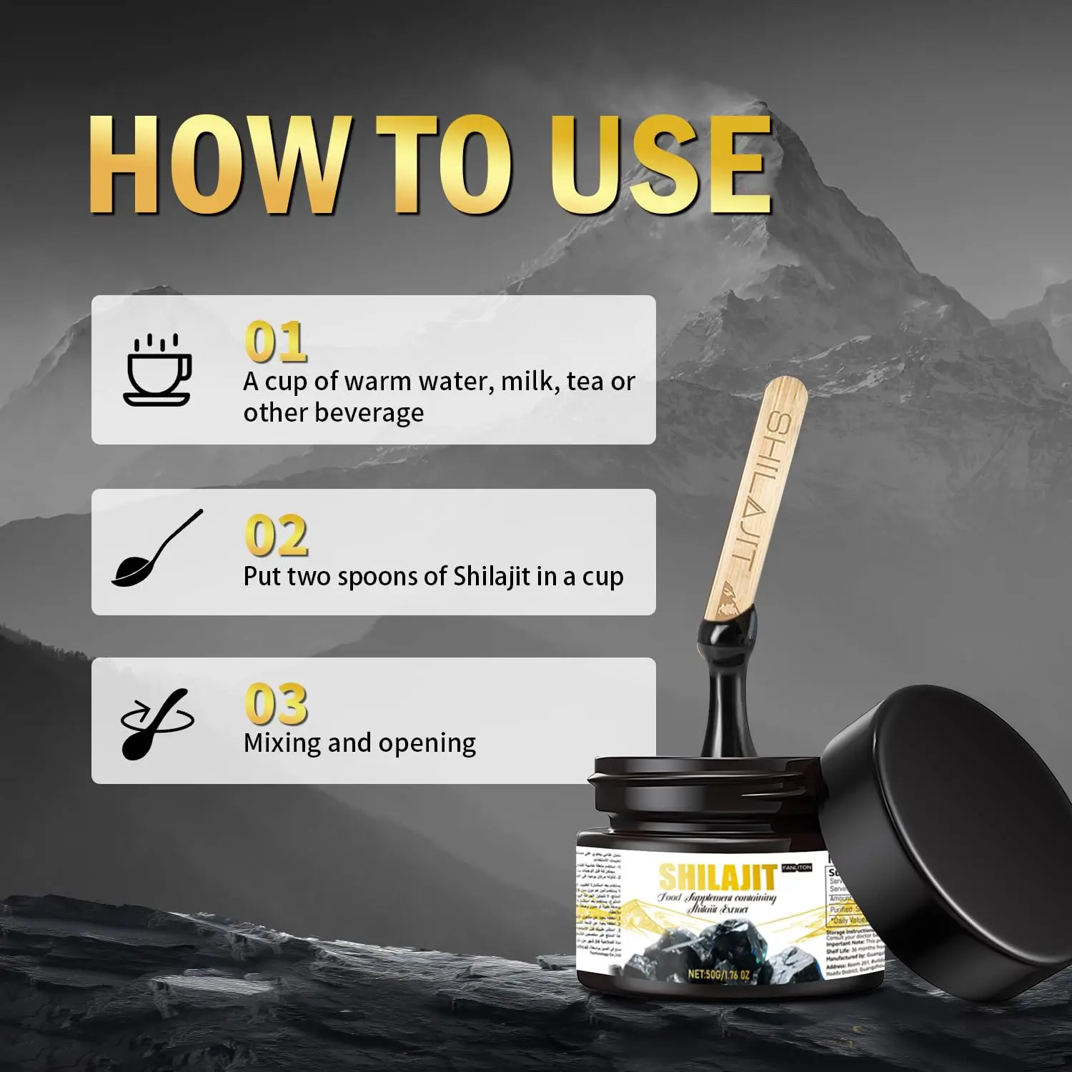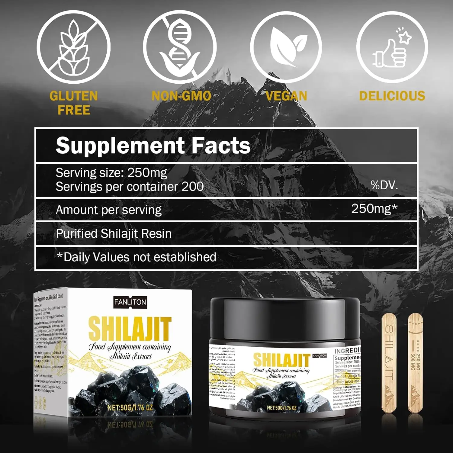 Experience the potent power of Fanliton Pure Himalayan Shilajit Resin, meticulously sourced and purified to deliver exceptional results. This 50g jar is packed with 52% active ingredients, confirmed by a comprehensive report included with every purchase. If you’re constantly struggling with fatigue and a lack of stamina, Fanliton Shilajit offers a natural solution to revitalize your body and mind. Our Shilajit is rich in Fulvic Acid, a key component known for its strong antioxidant and anti-inflammatory properties, helping to combat oxidative stress and support overall well-being. With over 80 trace minerals, Fanliton Himalayan Shilajit acts as a natural energy booster, replenishing vital nutrients and invigorating your system. Feel the difference as your energy levels soar and you regain a sense of freshness and vitality. Fanliton Shilajit not only boosts energy but also aids in the retention of maximum muscle strength, making it an ideal supplement for athletes and those seeking to maintain a physically active lifestyle. Discover the ancient secret to enhanced strength, endurance, and overall wellness with Fanliton Pure Himalayan Shilajit Resin. Embrace a revitalized you with the power of nature’s potent remedy, carefully crafted to deliver optimal benefits for a healthier, more energetic life. Each batch of our premium Shilajit is rigorously tested to guarantee the highest standards of purity and potency. Unlock your true potential and experience the transformative effects of Fanliton today. This is more than just a supplement; it’s an investment in your long-term health and well-being.