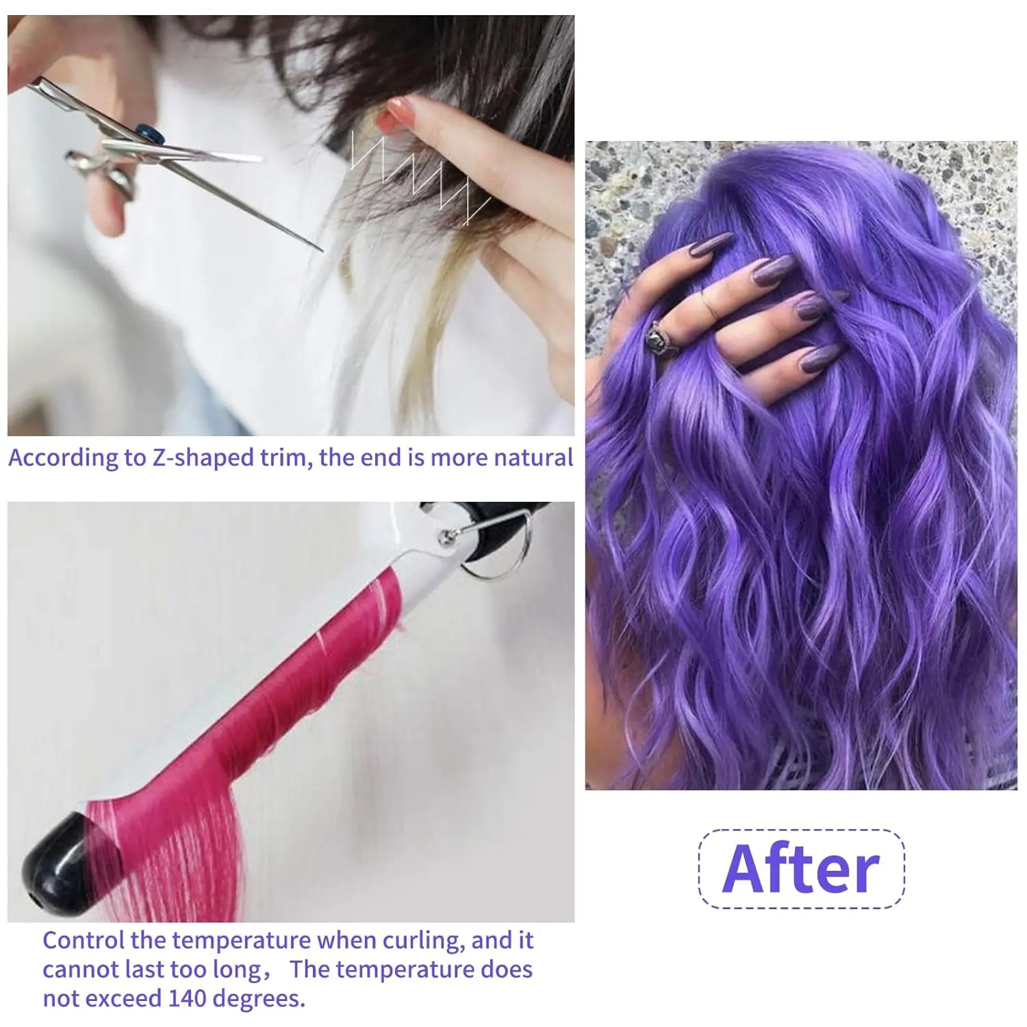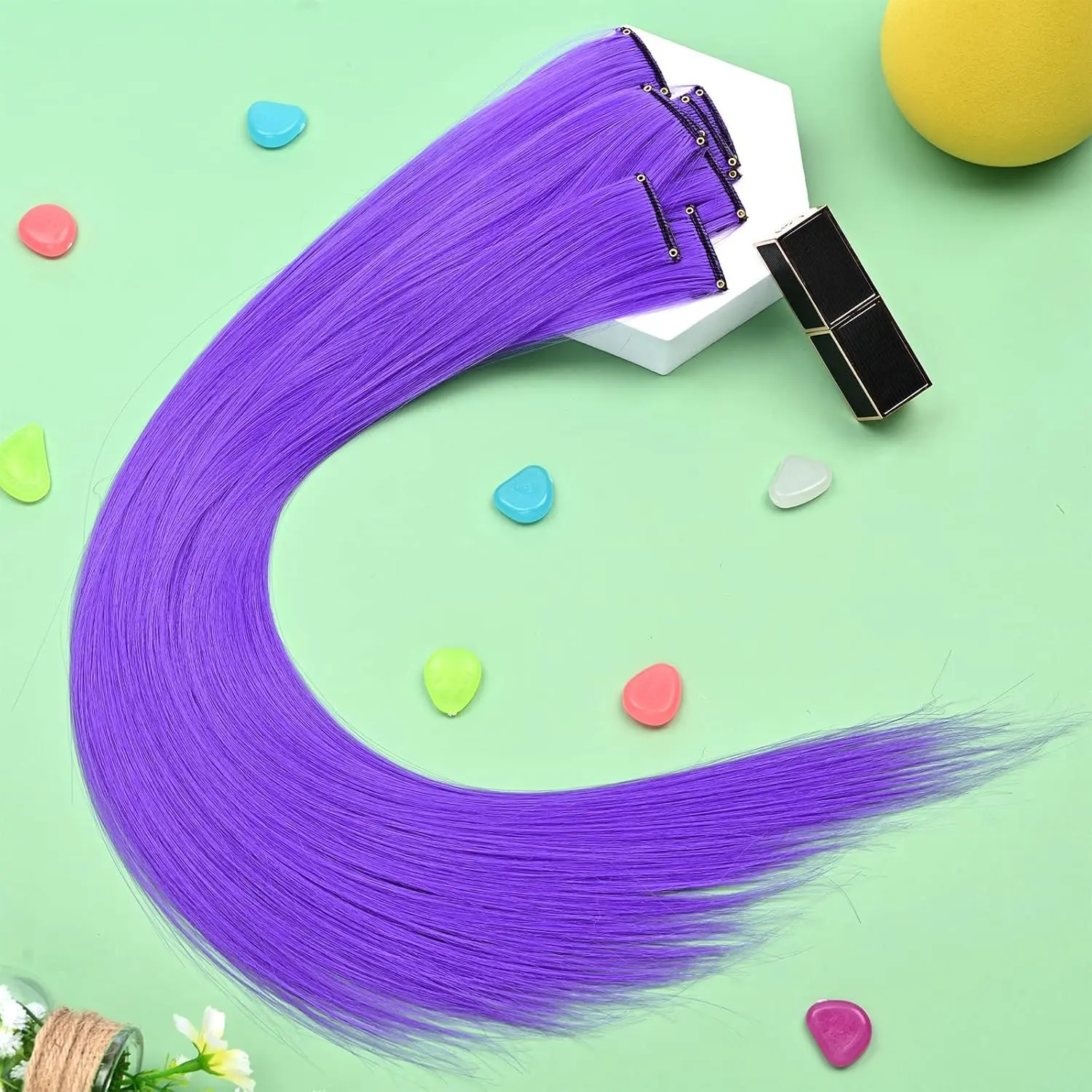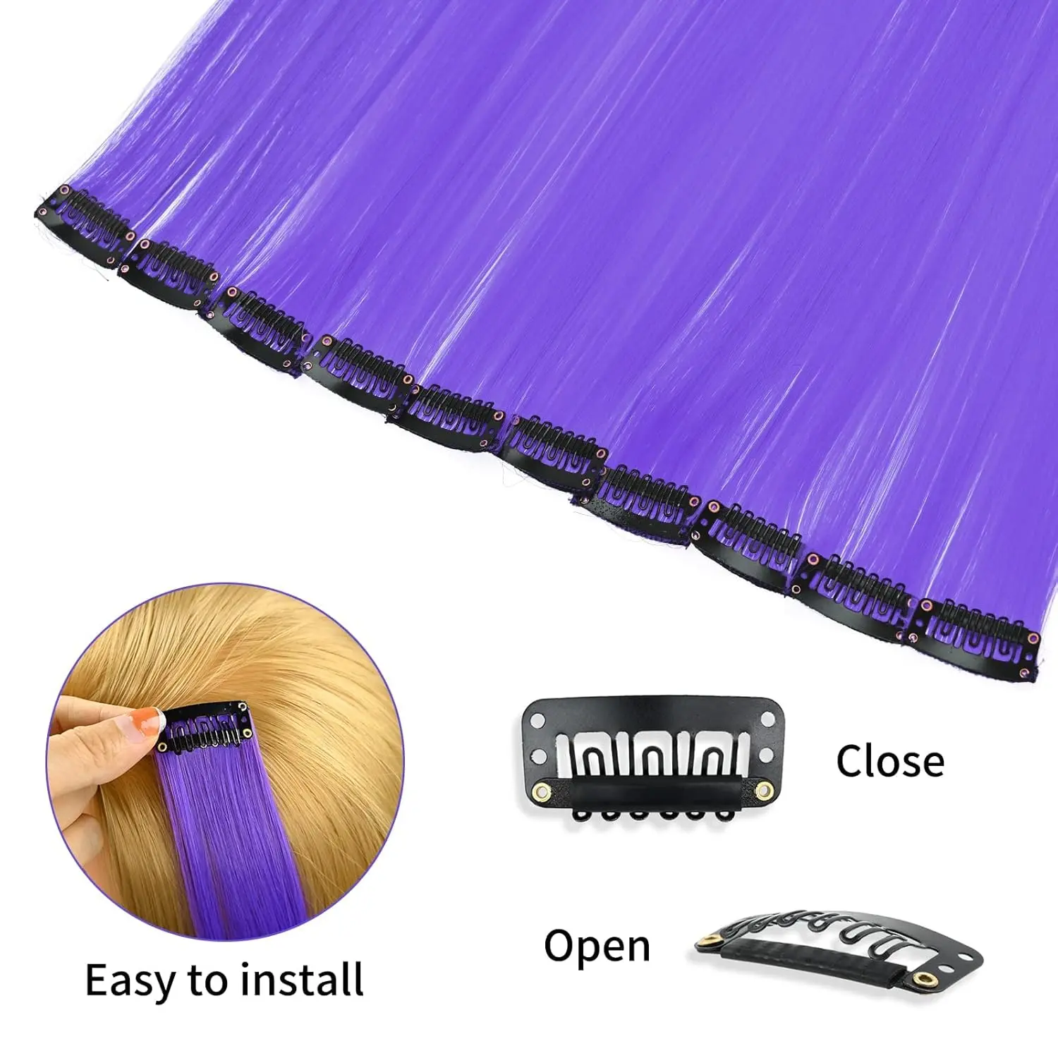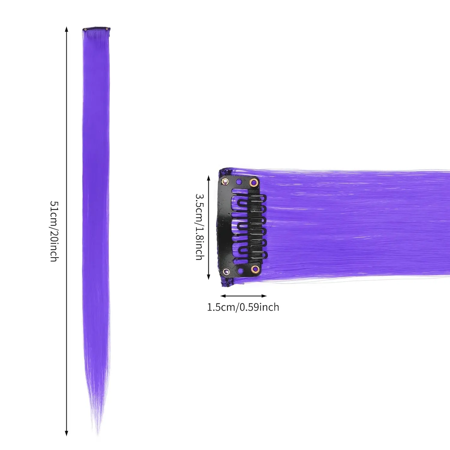 Add vibrant pops of purple to your hair instantly with these Purple Hair Extensions Clip In! This set includes 10 high-quality, easy-to-use clip-in extensions, perfect for adding length, volume, or a splash of color without any commitment. Made from heat-resistant synthetic fiber, these extensions can be styled with curling irons or straighteners to achieve your desired look. They’re lightweight, tangle-free, and shed-resistant, ensuring a comfortable and natural-looking blend with your own hair. The secure snap clips make application quick and easy, allowing you to transform your hairstyle in minutes. Whether you’re dressing up for a special occasion, adding some fun to your everyday look, or searching for the perfect gift, these purple clip-in hair extensions are a fantastic choice. Experiment with different styles and unleash your creativity! These extensions are also individually packaged to prevent tangling.