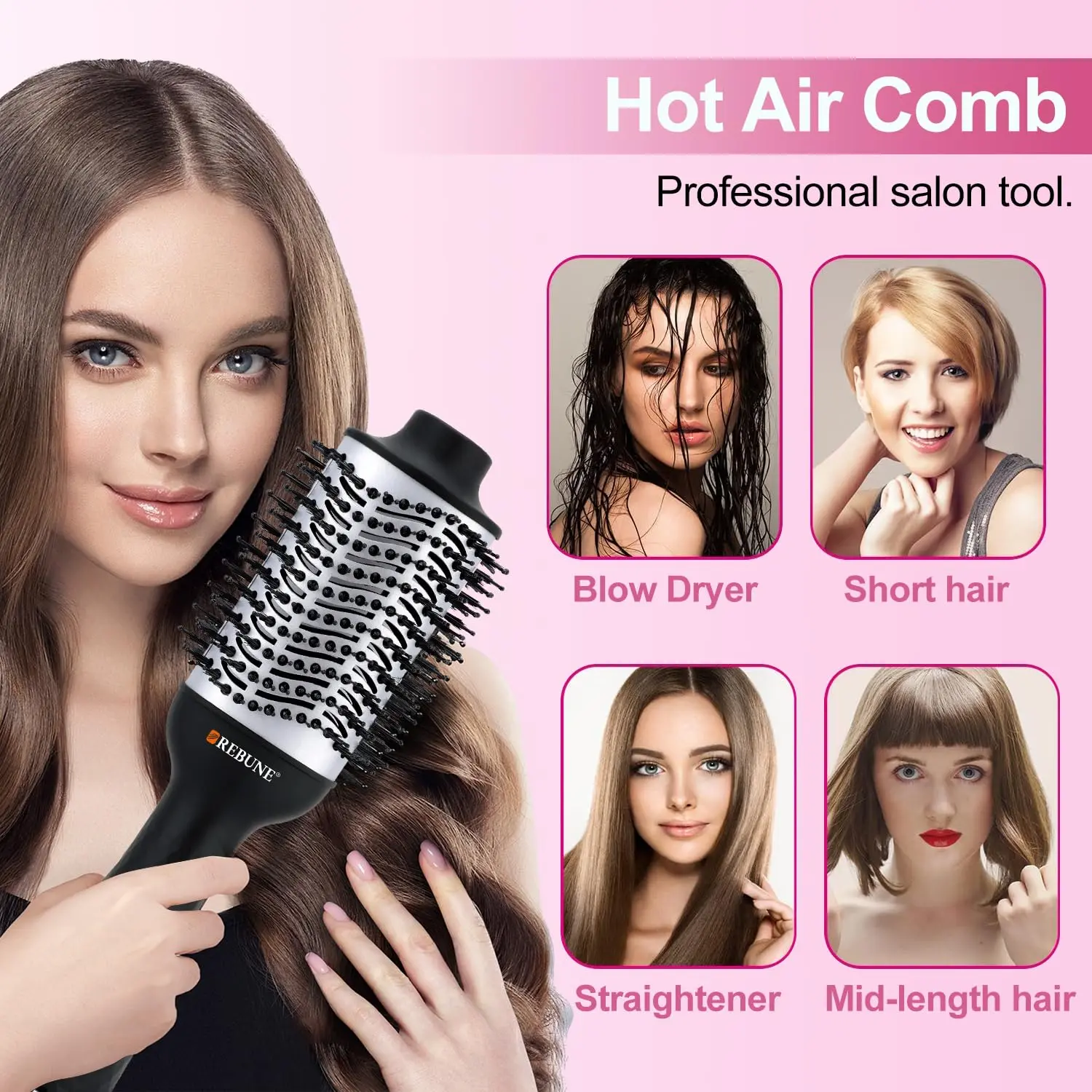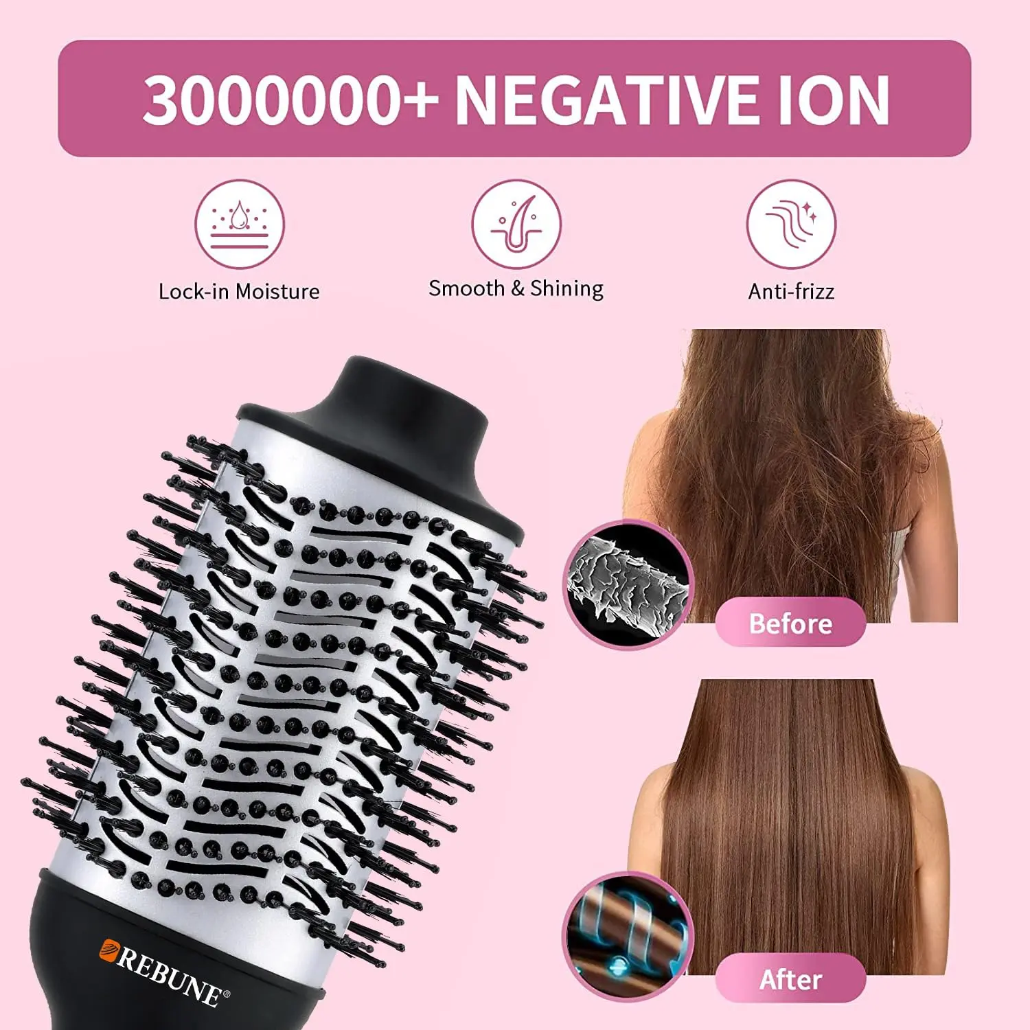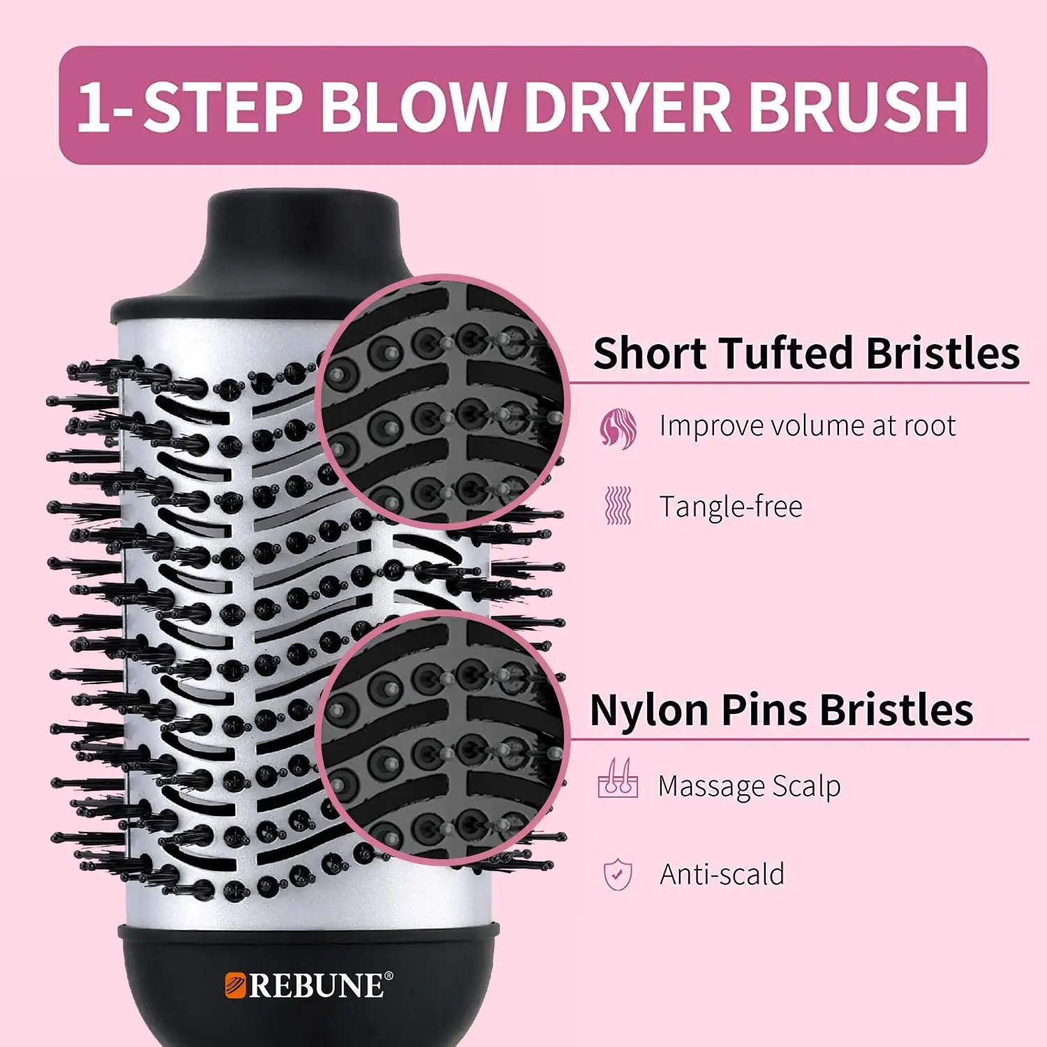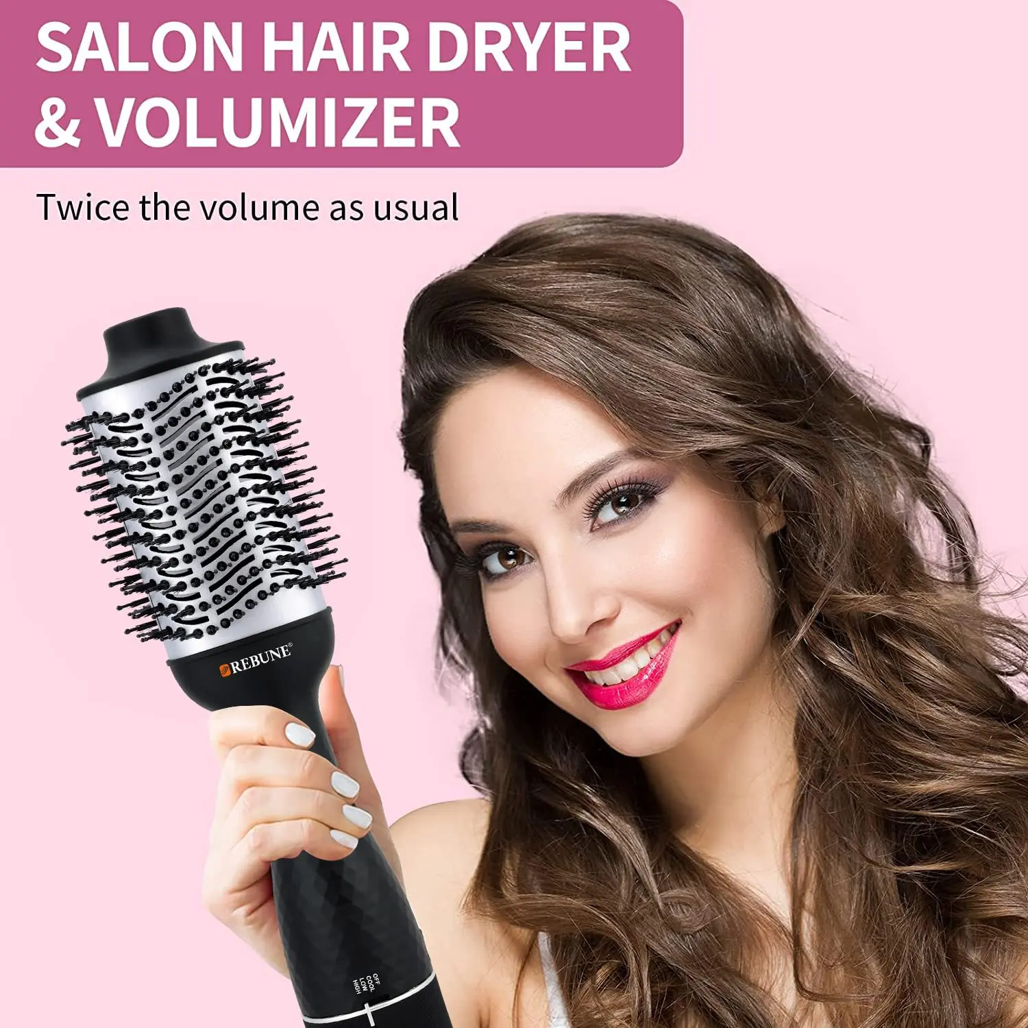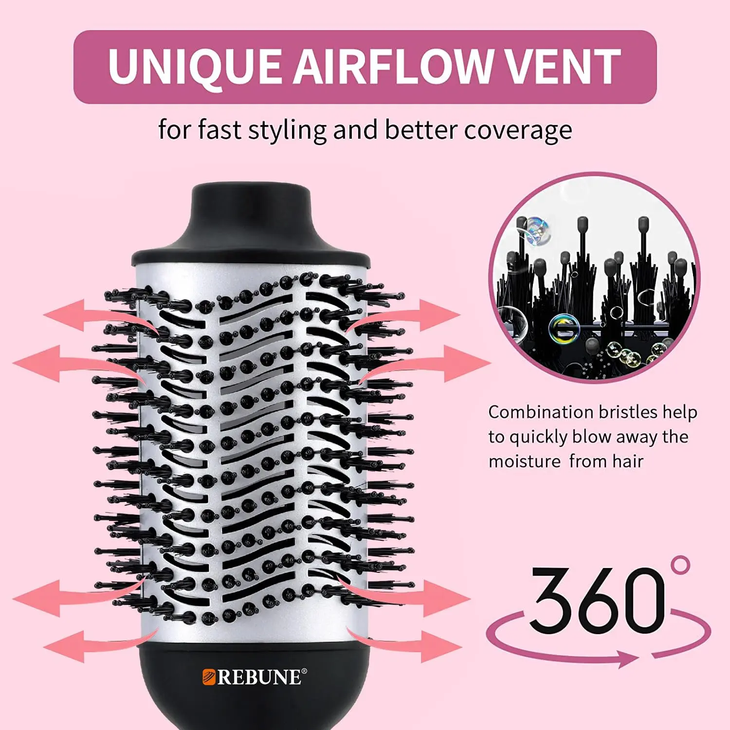 Achieve salon-worthy blowouts at home with the REBUNE Hair Dryer Brush! This 5-in-1 hot air brush styler is your all-in-one solution for drying, styling, and volumizing your hair. Experience the convenience of styling and drying in a single step, saving you time and effort. The powerful 1300W motor delivers maximum drying power while minimizing frizz and reducing hair damage.