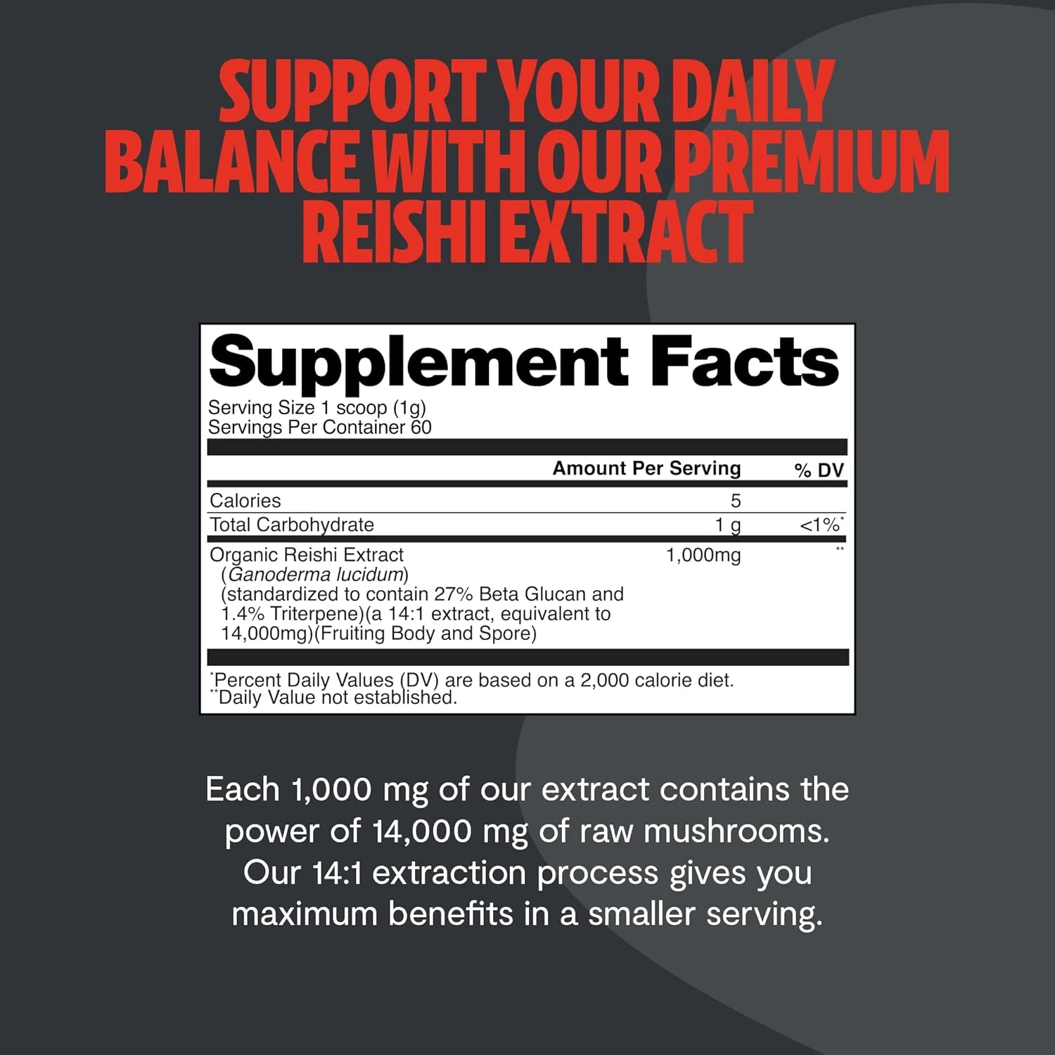 • 14,000mg Raw Mushroom Equivalent