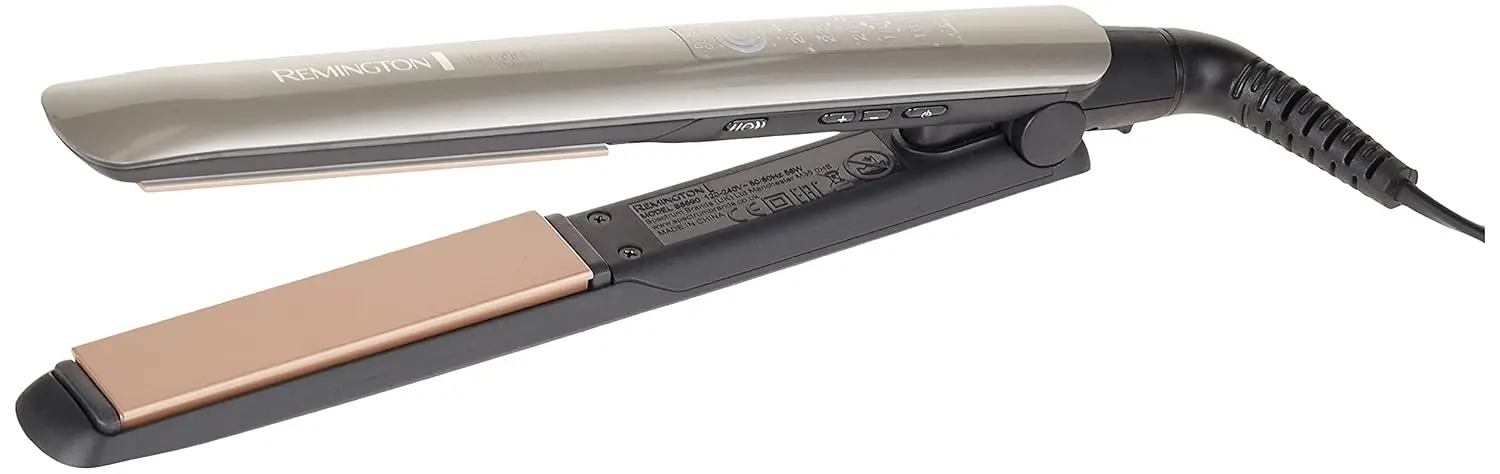 Achieve sleek, healthy-looking hair with the Remington Keratin Therapy Pro Straightener. This innovative straightener is designed to protect your hair from damage while delivering salon-quality results. Enhanced ceramic coated plates are infused with Keratin Micro Conditioners, which transfer to your hair during styling, leaving it smooth, shiny, and frizz-free. The unique heat protection sensor, embedded in the top plate, continually detects moisture levels in your hair and optimises the temperature accordingly. This intelligent technology delivers up to 57% more protection from damage and breakage compared to a standard ceramic Remington straightener, ensuring your hair stays healthy and strong. (Note: This is not a hair treatment). With an integrated digital display, you can easily control the temperature with 5 settings ranging from 160-230 degrees Celsius, allowing you to select the ideal heat for your specific hair type and desired style. The fast heat-up time of just 15 seconds means you’ll be ready to style in no time. Longer length floating plates ensure constant contact and even pressure on the hair, resulting in consistent straightening from root to tip. Experience professional styling at home with the Remington Keratin Therapy Pro Straightener, the perfect tool for achieving beautiful, healthy, and straight hair every time.