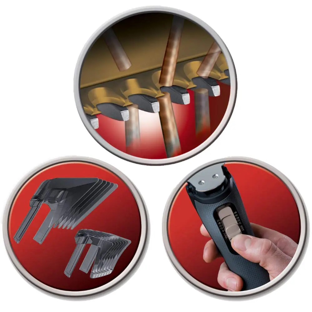 • SlideSelect adjustable combs with auto-lock