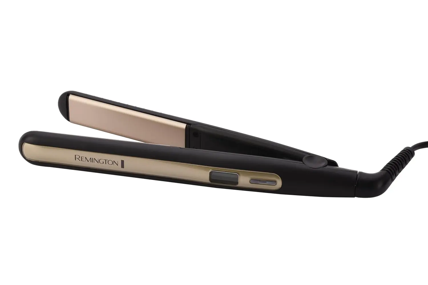 Achieve salon-worthy sleekness and glamorous curls with the Remington Sleek & Curl Hair Straightener. This versatile styling tool is designed to help you effortlessly create a variety of hairstyles, from pin-straight locks to bouncy, voluminous curls. Its advanced ceramic-coated plates glide smoothly through your hair, minimizing friction and reducing the risk of damage. The plates heat up quickly and maintain a consistent temperature, ensuring even heat distribution for optimal results. Whether you’re looking to straighten, curl, or add waves to your hair, the Remington Sleek & Curl is your go-to styling companion. The rounded housing design makes it easy to create beautiful curls and waves, while the variable temperature settings allow you to customize the heat to suit your hair type. Protect your hair while styling with the advanced ceramic coating, infused with tourmaline, which reduces frizz and enhances shine. Say goodbye to dull, lifeless hair and hello to healthy, radiant locks. The Remington Sleek & Curl Hair Straightener is designed with your convenience in mind. The swivel cord prevents tangling, making it easy to maneuver the straightener without any hassle. The automatic shut-off feature provides peace of mind, ensuring that the straightener turns off automatically after a period of inactivity. The sleek and ergonomic design makes it comfortable to hold and easy to use. It is the perfect styling tool for creating sleek, smooth styles or bouncy, beautiful curls. Get ready to experience professional-quality results in the comfort of your own home with the Remington Sleek & Curl Hair Straightener.