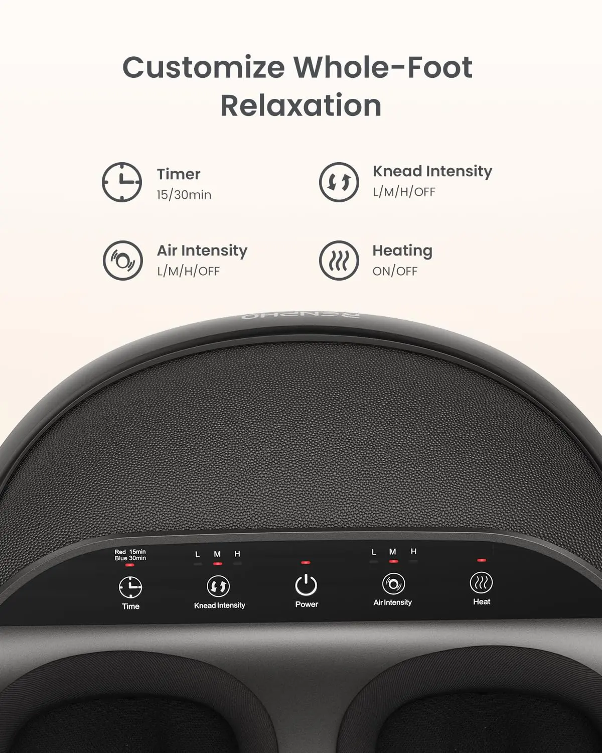 Relieve tired feet and melt away stress with the RENPHO Foot Massager! This innovative device combines the benefits of Shiatsu massage, heat therapy, and air compression to deliver a truly rejuvenating experience. After a long day of work, intense exercise, or simply being on your feet, indulge in a deeply relaxing massage that targets key pressure points to alleviate muscle tension and promote overall well-being. The RENPHO foot massager features rotating balls and a roll bar to knead and soothe your soles, heels, and toes. The infrared heat function gently warms your feet, enhancing circulation and further relaxing muscles. Adjustable air compression provides a customized massage intensity, allowing you to tailor the experience to your specific needs and preferences. The ergonomic design ensures a comfortable and effective massage, mimicking the techniques of a professional therapist. With three intensity levels for both Shiatsu massage and air pressure, you can easily find the perfect setting for optimal relaxation. The user-friendly touch panel allows for effortless control, even with your feet. Maintain a clean and hygienic environment with the removable and washable cloth foot chambers. This foot massager is not only a treat for yourself but also makes a thoughtful gift for friends, family, and loved ones. Give the gift of relaxation and well-being for birthdays, holidays, or any special occasion. Just 30 minutes of massage can help improve circulation, reduce stress symptoms, and promote a sense of overall vitality. Easy to use and safe, the RENPHO foot massager comes with detailed instructions in English and German. It is an ideal Halloween gift, especially for those who need relief from foot pain.
