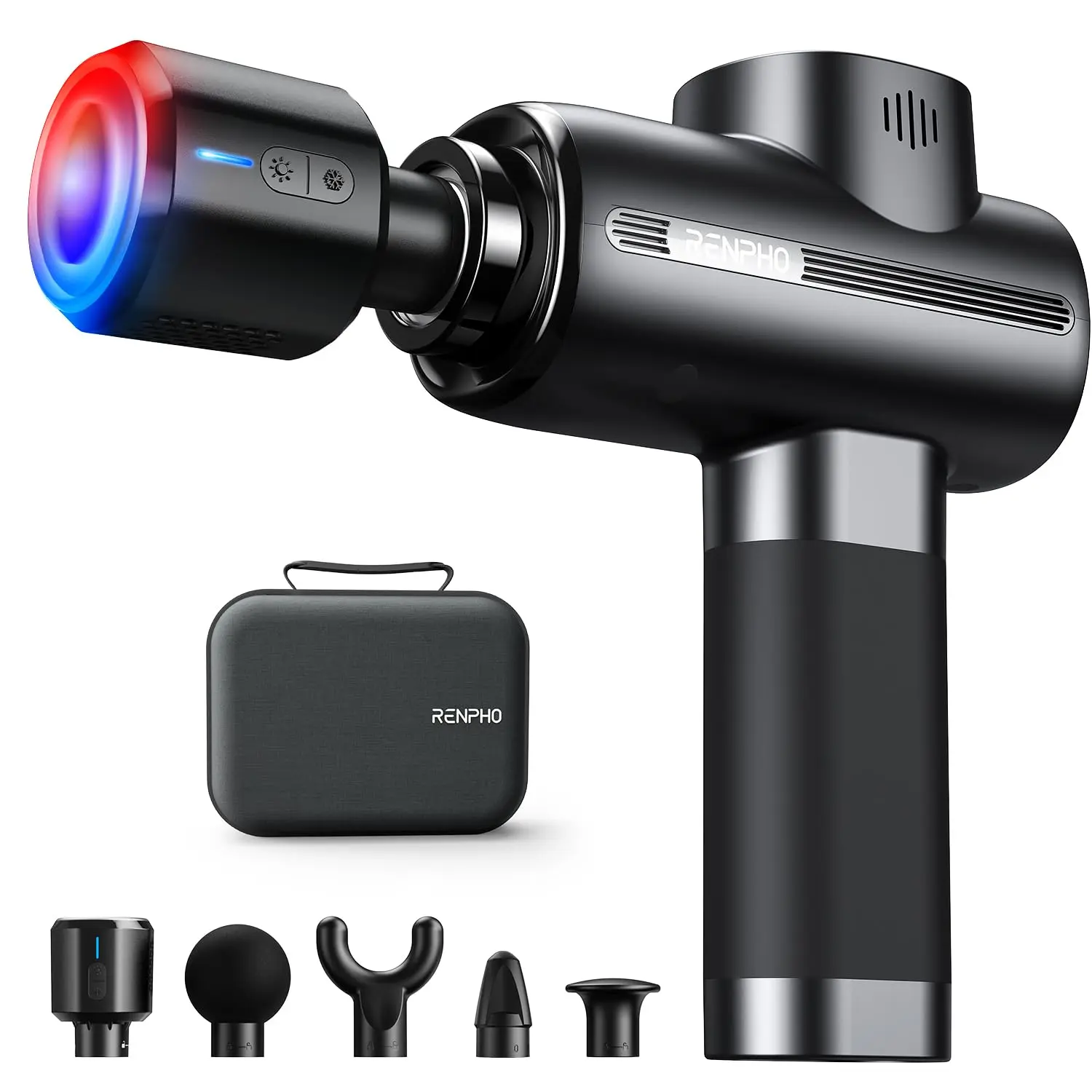 Experience the ultimate in muscle recovery and relaxation with the RENPHO Heat & Cold Massage Gun. This innovative massage gun combines powerful percussion therapy with the soothing benefits of both heat and cold. The included heating and cooling massage head allows you to customize your treatment, delivering targeted relief to sore muscles. Heat up to 113°F (45°C) to loosen tight muscles and improve circulation, or cool down to 47°F (8°C) to reduce inflammation and numb pain. With its 15W PD fast charging and Type-C compatibility, you can quickly power up the massage gun for portable use. The high-speed 3200RPM brushless motor provides deep tissue massage, reaching even the most stubborn knots. Despite its power, the RENPHO massage gun is surprisingly lightweight at only 0.68kg, making it easy to hold and maneuver during your massage. The ergonomic design allows for one-handed operation, giving you full control over your treatment. Plus, the super quiet operation (less than 45dB) ensures a relaxing and peaceful experience. Note: Ensure the heating and cooling massage head is securely connected before use.