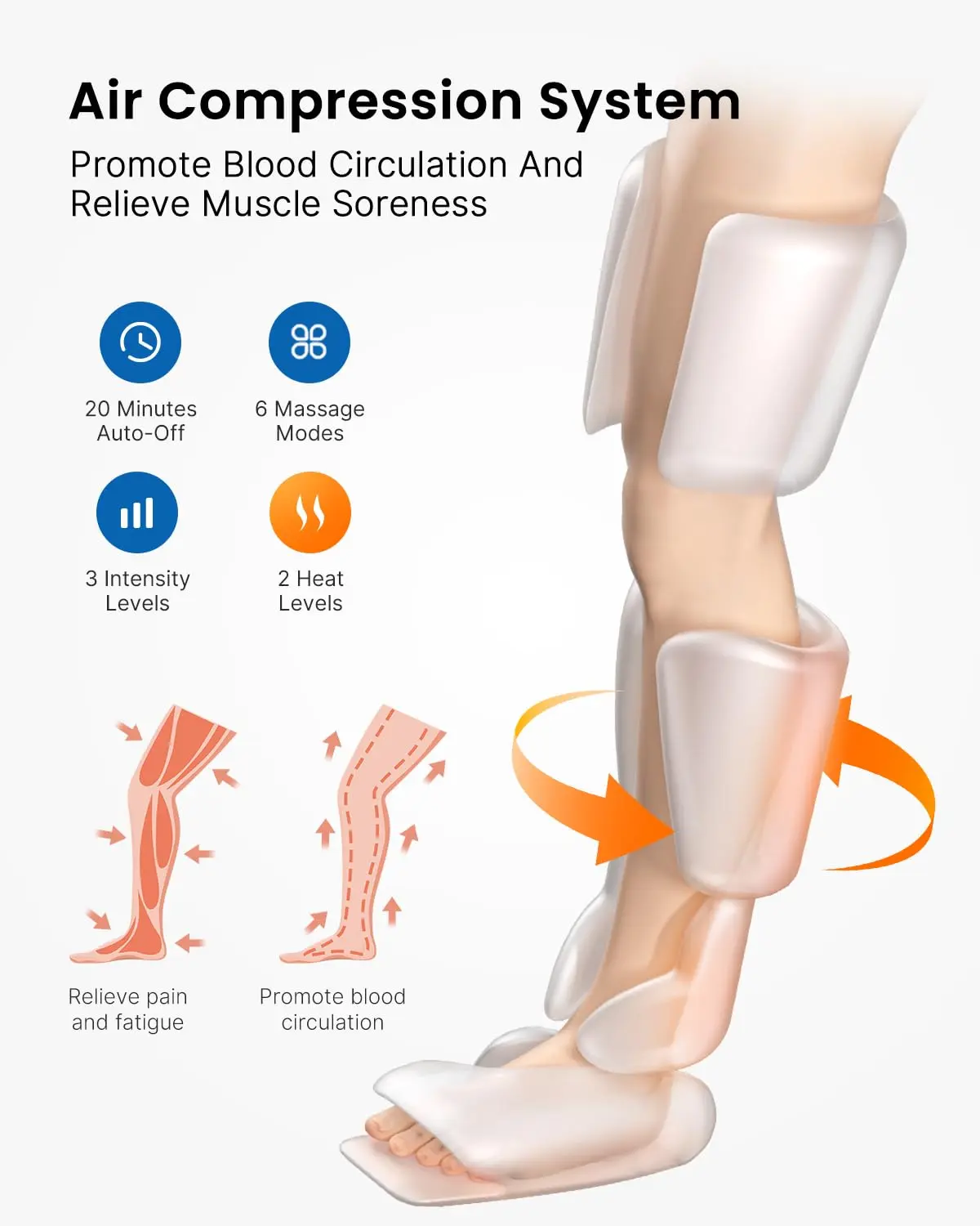 • 6 Massage modes (sequence, circulation, whole)