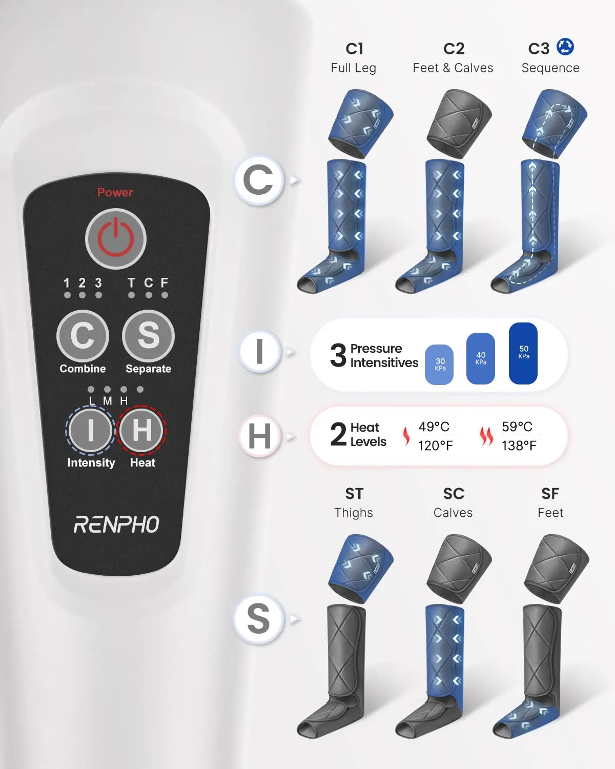• Detachable thigh and calf wraps for targeted massage