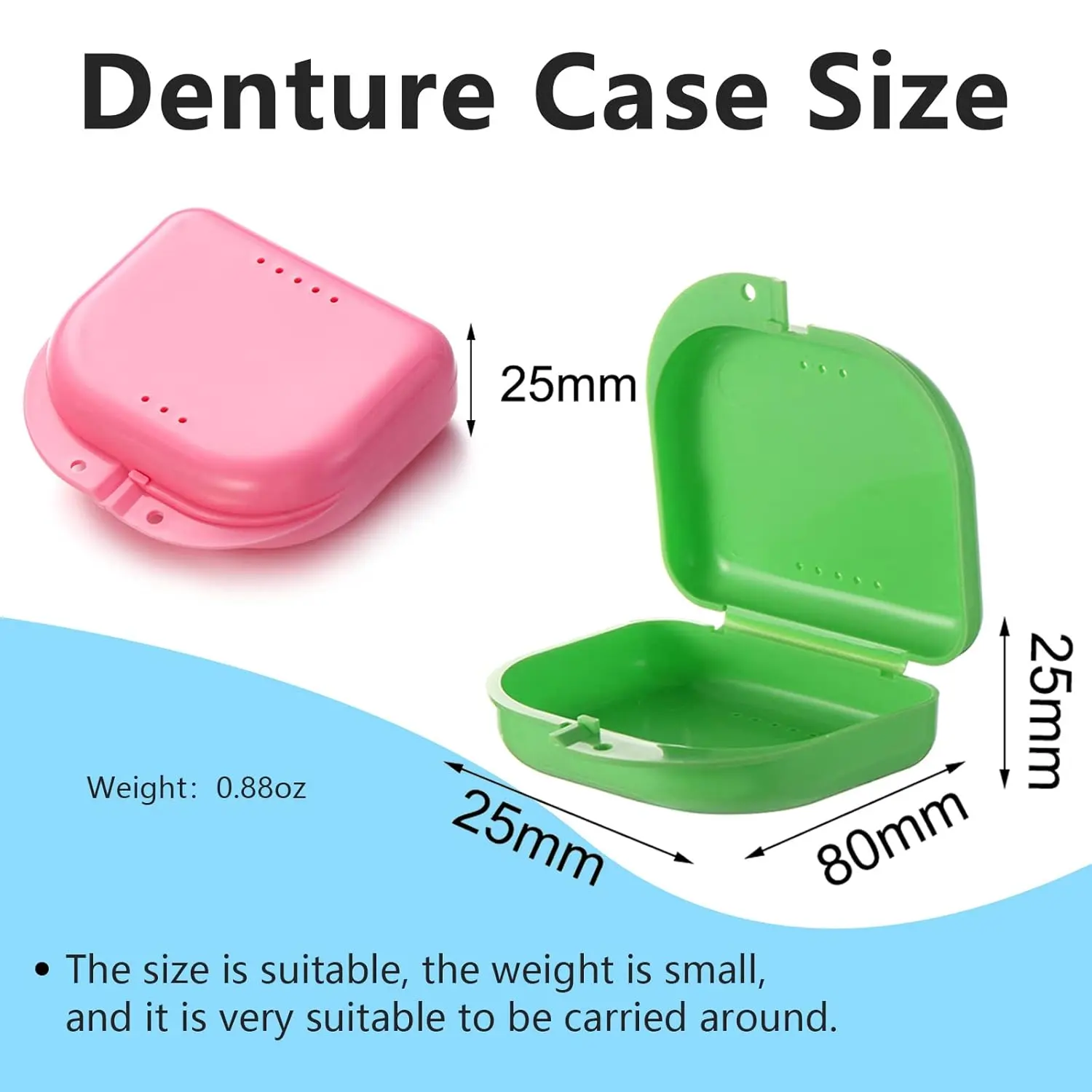 This 2-pack of blue dental retainer cases offers a convenient and stylish solution for your orthodontic and dental care needs. Their mini style makes them incredibly portable, fitting easily into pockets, handbags, backpacks, or drawers. Take them with you wherever you go, ensuring your oral appliance is always within reach and protected. The vibrant blue color adds a touch of personality to your daily routine. These cases are not only functional but also aesthetically pleasing. Invest in the long-term care of your retainers, mouthguards, and partial dentures with our reliable and convenient retainer cases. They are an essential accessory for anyone undergoing orthodontic treatment or requiring oral appliance storage. Experience the difference that quality and thoughtful design can make in your daily oral hygiene routine.