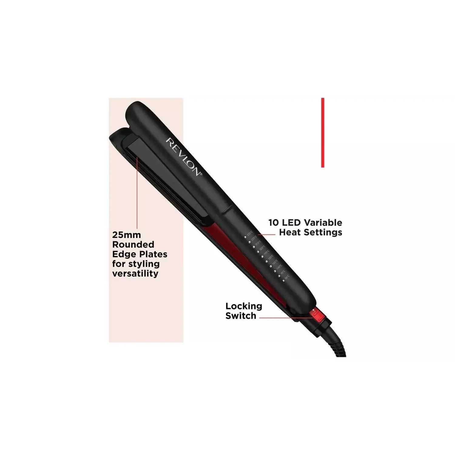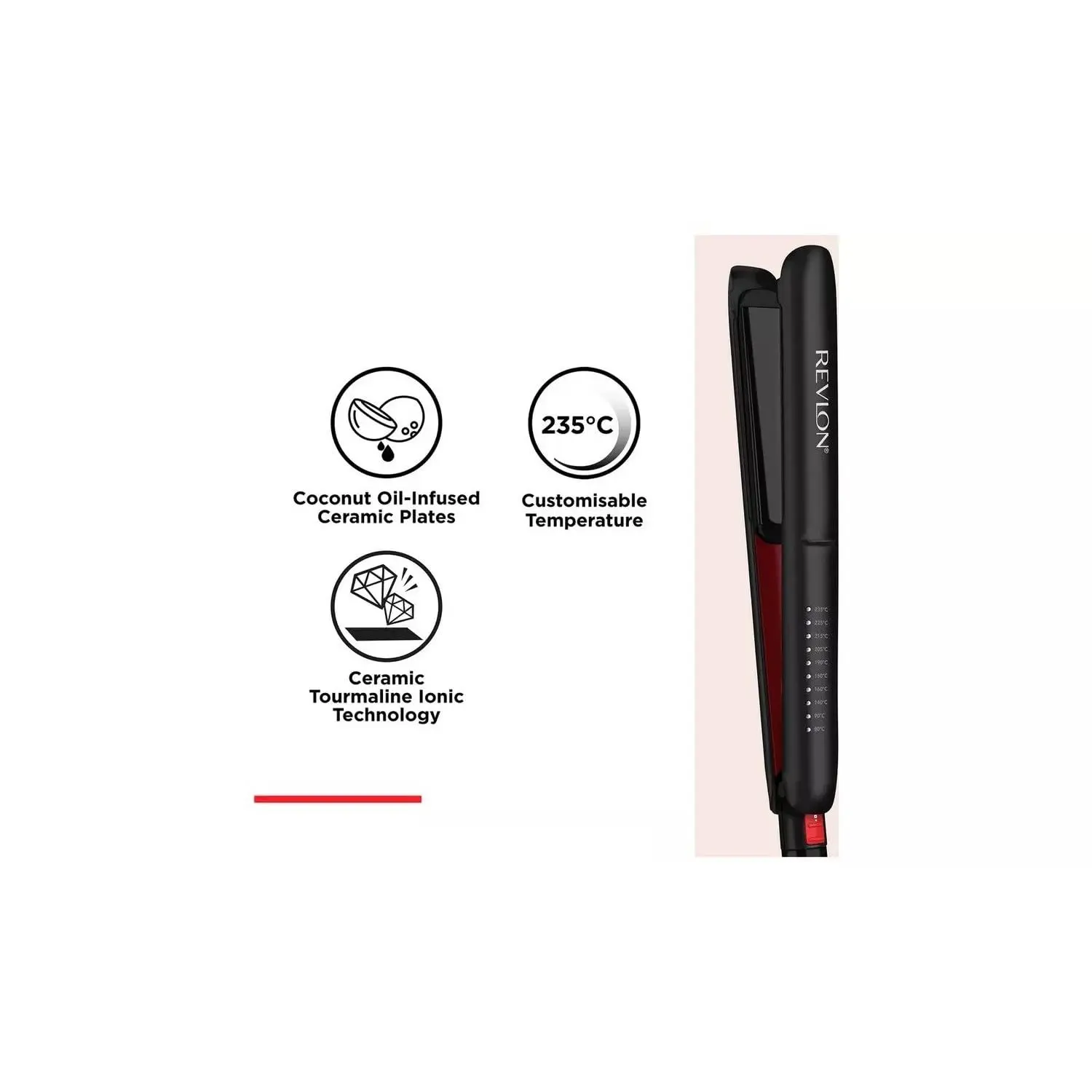 Achieve salon-worthy hair every day with the Revlon Smoothstay Hair Straightener! This versatile styling tool is designed to deliver long-lasting, shiny, and smooth results, no matter what style you desire – from sleek, straight looks to bouncy, loose curls. The secret lies in the 25mm triple-coated ceramic plates, infused with nourishing coconut oil, which glide effortlessly through your hair, minimizing friction and maximizing shine. The coconut oil infusion helps to condition your hair as you style, leaving it visibly smoother, healthier, and more radiant. Forget about damaging hot spots or uneven heat distribution – the advanced ceramic technology ensures consistent temperature across the plates, providing even and efficient styling. The floating plates with rounded edges offer unparalleled styling versatility, allowing you to create both straight and curled styles with ease, without leaving unsightly crease marks.