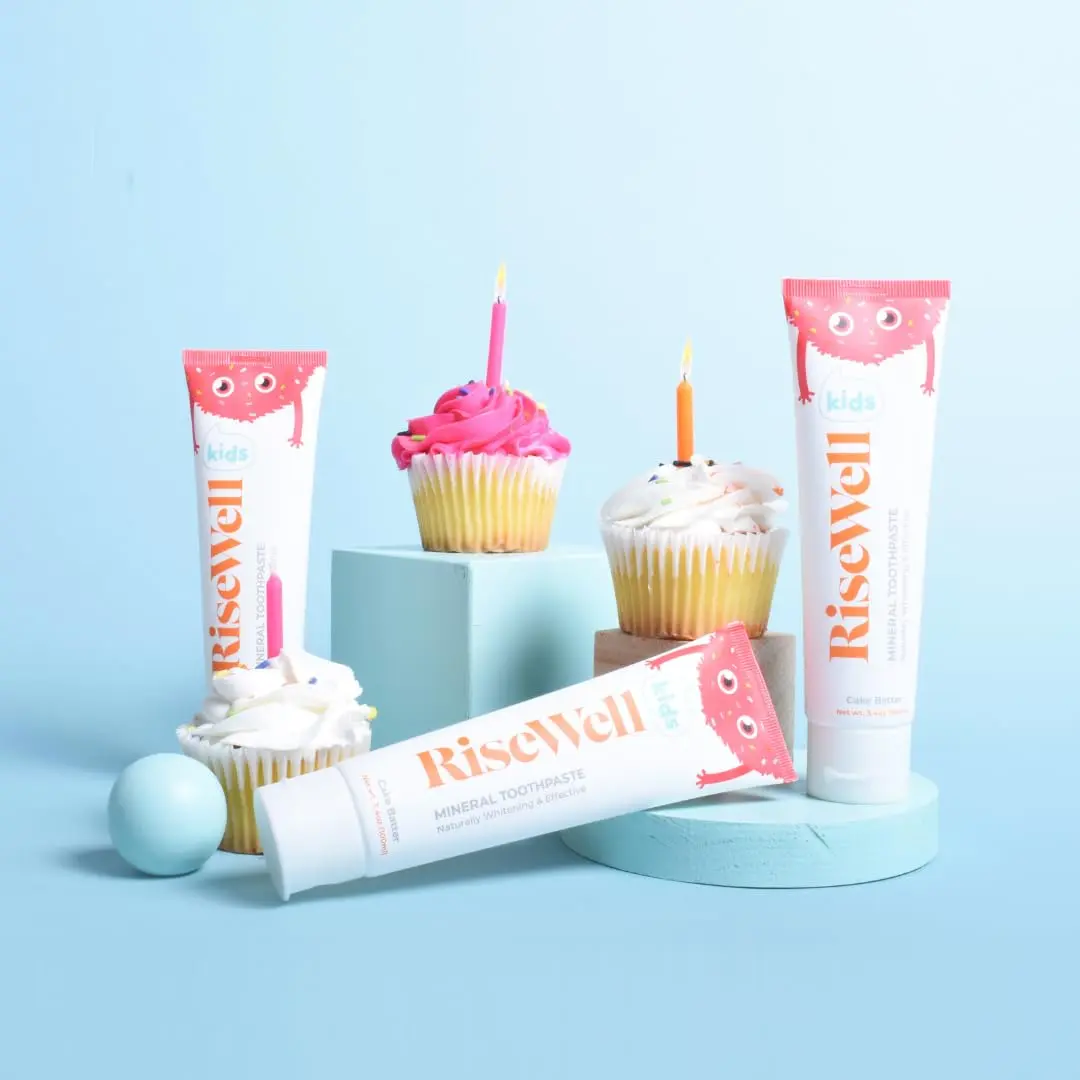 RiseWell Kids Cake Batter Hydroxyapatite Toothpaste makes brushing fun and effective! This natural toothpaste is powered by hydroxyapatite, a safe and natural alternative to fluoride, that helps remineralize your child’s teeth, keeping them strong and healthy. Unlike other toothpastes, RiseWell’s formula is safe to swallow, giving parents peace of mind during brushing. Our delicious cake batter flavor encourages kids to brush regularly, promoting good oral hygiene habits. Made with only the finest ingredients, this toothpaste is free from artificial colors, flavors, and preservatives, ensuring a pure and healthy option for your child’s dental care. Give your kids the gift of a healthy, bright smile with RiseWell Kids Cake Batter Hydroxyapatite Toothpaste! Add this essential item to your kids health and personal care and oral hygiene collection now! RiseWell’s kids remineralizing toothpaste is not only effective but also enjoyable for children of all ages. This hydroxyapatite toothpaste is developed by dentists to provide a gentle yet powerful solution for maintaining strong and healthy teeth. By strengthening and remineralizing teeth, our toothpaste helps prevent cavities and promotes healthy tooth development.