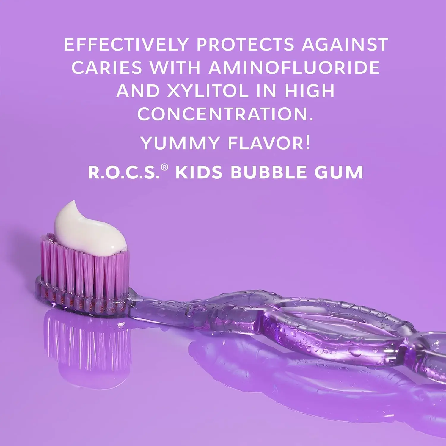 • Delicious bubble gum flavor encourages brushing
