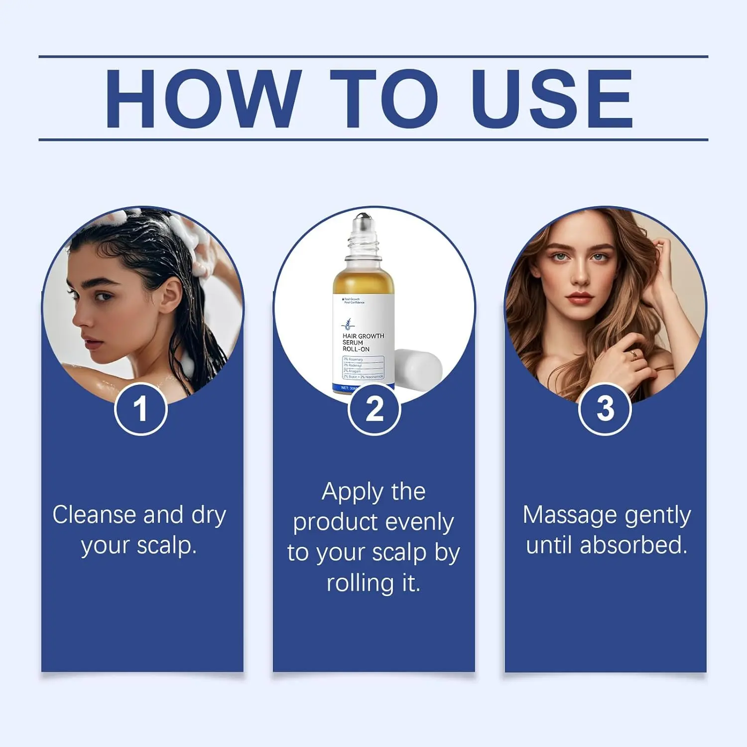 Targeted hair growth serum roll-on with Rosemary, Redensyl, and Anagain. Promotes scalp health, reduces hair loss, and awakens follicles. Easy to use, non-greasy, and works for all hair types.