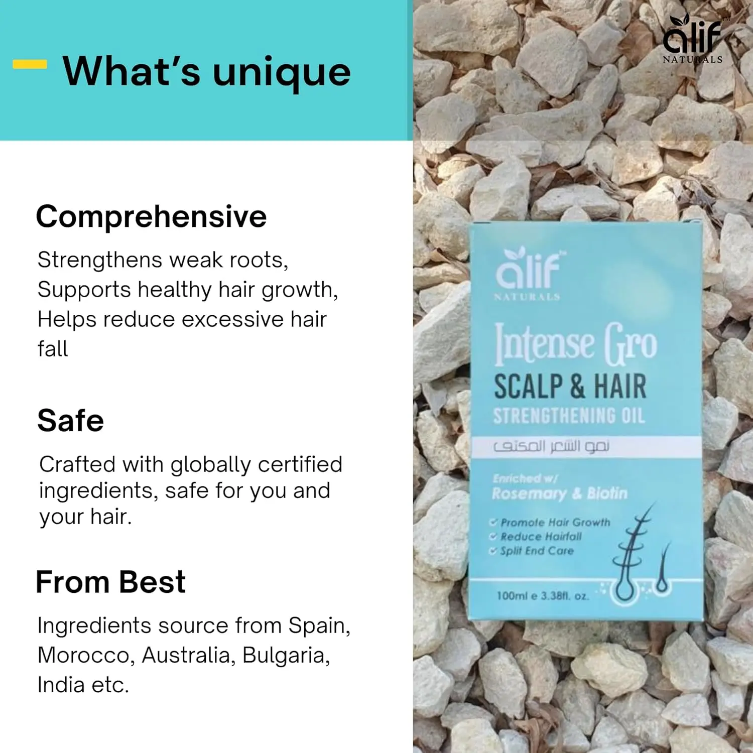 • Clinically studied actives: rosemary extract and biotin.