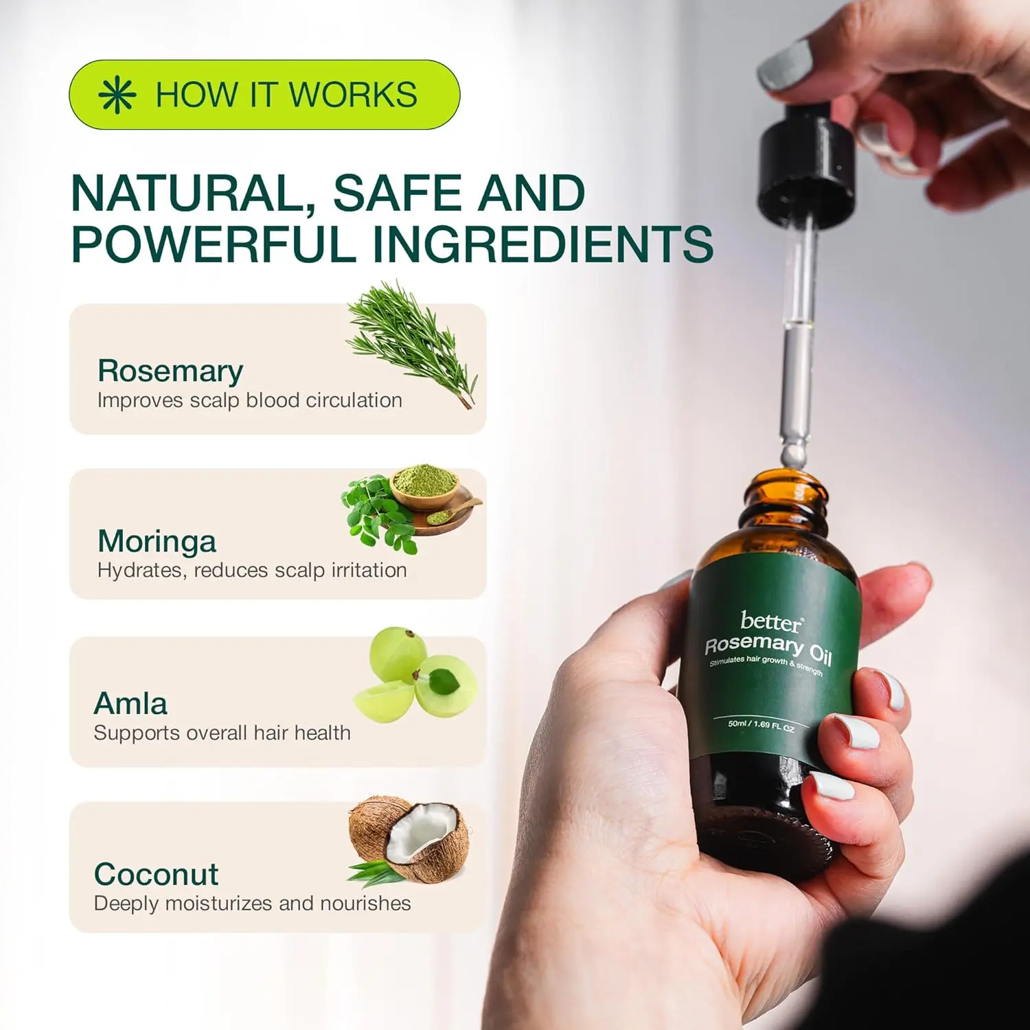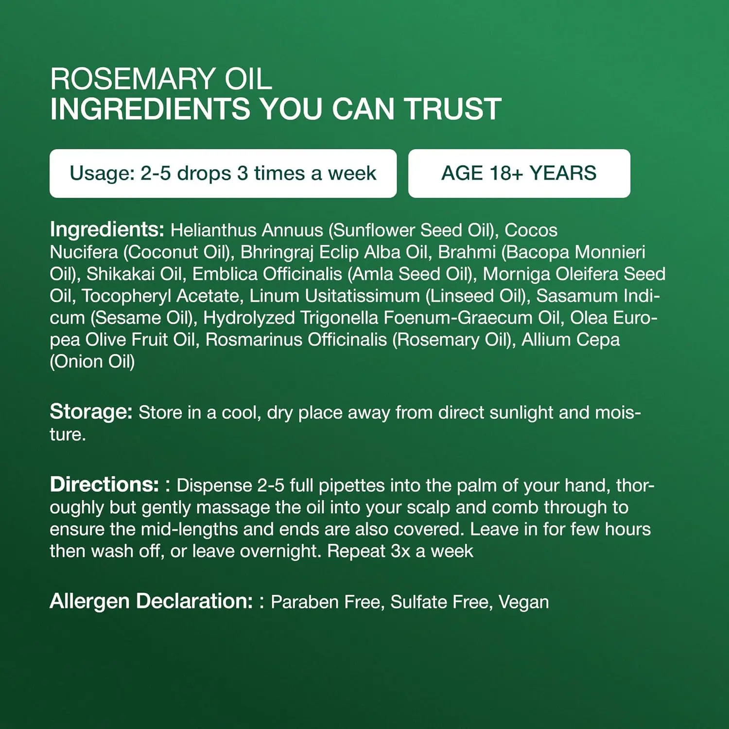 Unlock the secret to luscious, healthy hair with our Rosemary Oil for Hair Growth! This 100% pure and natural oil is cold-pressed to retain all its vital nutrients, making it the perfect solution for promoting hair growth, strengthening strands, and nourishing your scalp.