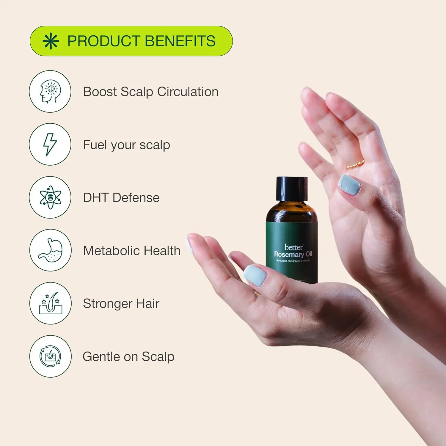 Experience the difference that pure, natural rosemary oil can make in your hair and overall well-being. Achieve thicker, stronger, and healthier hair with this essential oil.