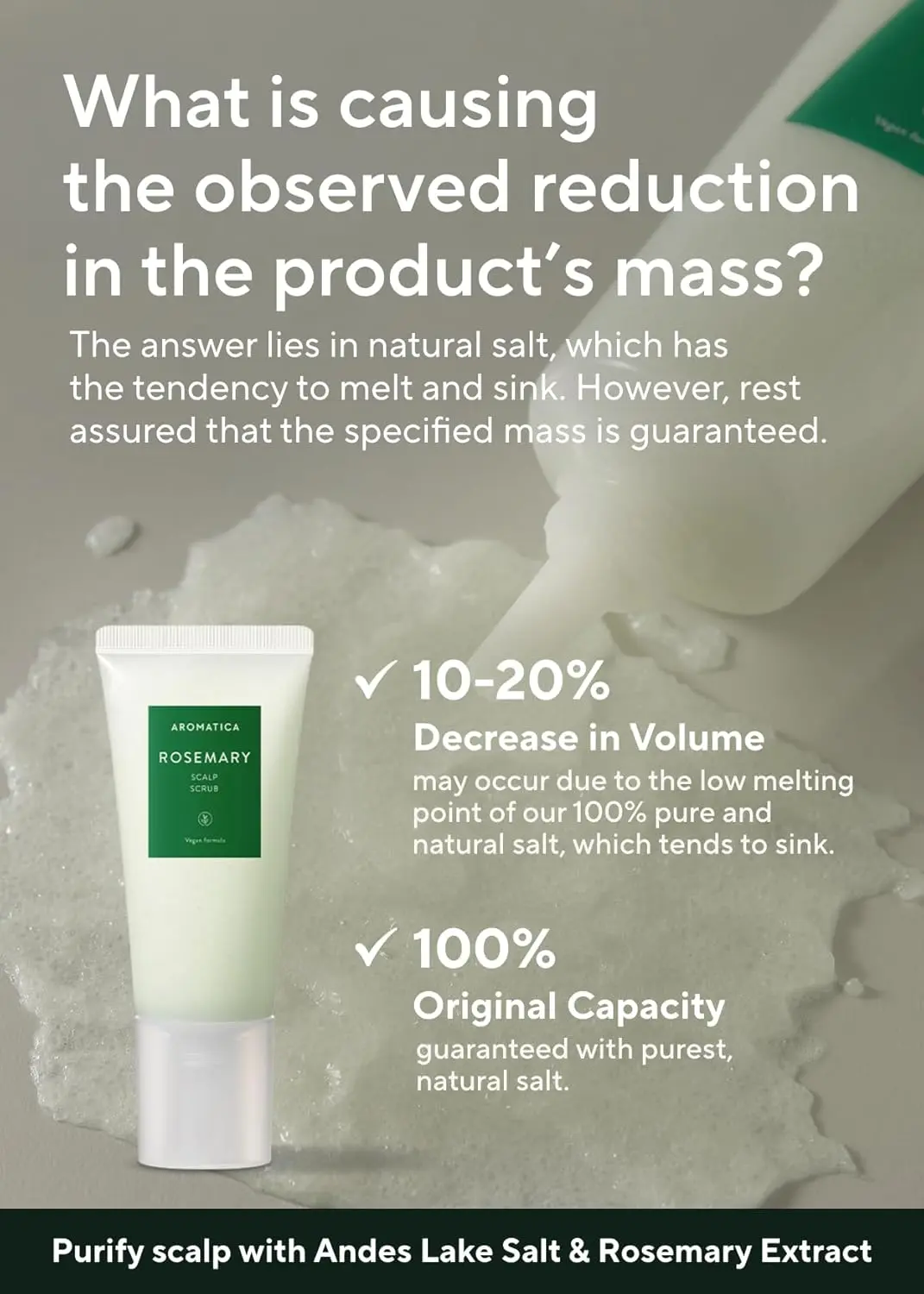 Revitalize your scalp and unlock healthier, more vibrant hair with our Rosemary Scalp Scrub. This invigorating physical scrub uses natural sea salt granules to gently exfoliate and purify your scalp, removing buildup, excess oil, and impurities that can weigh hair down. This thorough cleanse helps stimulate and nourish hair roots promoting a healthier scalp environment conducive to optimal hair growth. Our unique formula is enriched with a blend of beneficial botanicals, including rosemary, known for its stimulating and strengthening properties, brinjal (eggplant), coriander, and oregano. These natural ingredients work together to maintain hair health and provide a refreshing, purified scalp. Experience the unique gel-type texture, infused with exfoliating sea salt granules, that effortlessly dissolves upon gentle scrubbing and contact with water. This process removes dead skin cells and unclogs pores, which assists in better absorption of nutrients and conditioning treatments. We believe in clean beauty, which is why our Rosemary Scalp Scrub is formulated without silicones, animal-derived ingredients, mineral oil, parabens, phenoxyethanol, PG (propylene glycol), phthalates, synthetic fragrances, and triclosan. This means you can enjoy a powerful scalp treatment without exposing yourself to potentially harmful chemicals. Give your hair and scalp the care they deserve with our naturally derived, cruelty-free, and effective Rosemary Scalp Scrub. Reveal a refreshed, balanced, and healthy scalp to promote the best possible environment for strong, lustrous hair. This deep cleansing action not only helps with hair growth but can also reduce scalp itchiness and dandruff. Regular use of this scalp scrub will help to promote a healthier scalp.