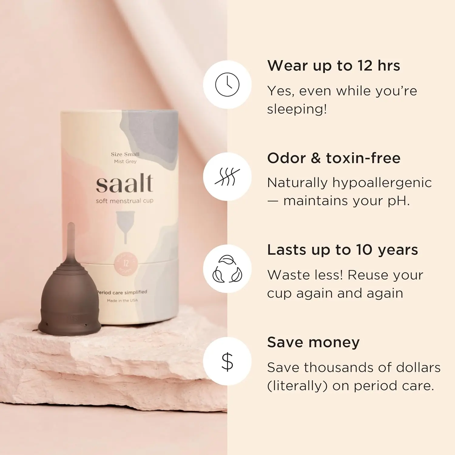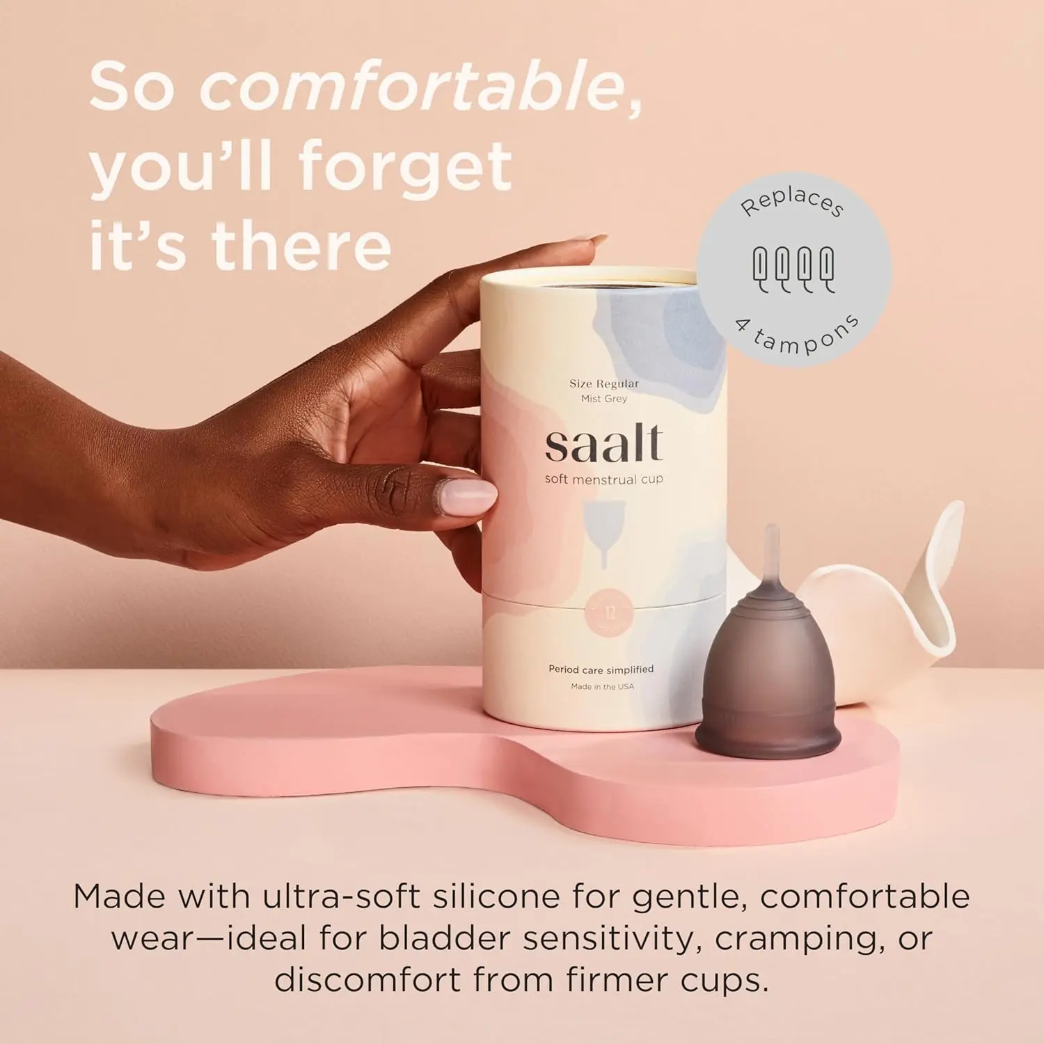 Experience unparalleled comfort and leak-free protection with the Saalt Soft Cup. Designed for women seeking a gentle and reliable period solution, this menstrual cup offers up to 12 hours of worry-free wear, allowing you to confidently embrace your daily activities. Made from ultra-soft, medical-grade silicone, the Saalt Soft Cup is exceptionally comfortable, even for those with bladder sensitivity or cramping. Its flexible design ensures a secure and discreet fit, so you can swim, hike, sleep, and move freely without the inconvenience of leaks or frequent changes. Reduce your environmental impact and save money with this reusable menstrual cup, which can last for up to 10 years, replacing thousands of disposable tampons and pads. Easy to clean and store, the Saalt Soft Cup is a safe, sustainable, and comfortable alternative to traditional period products. Made in the USA, it is BPA & Latex Free, and cruelty-free, providing you with peace of mind and reliable protection every cycle. This cup is a game-changer for period management.