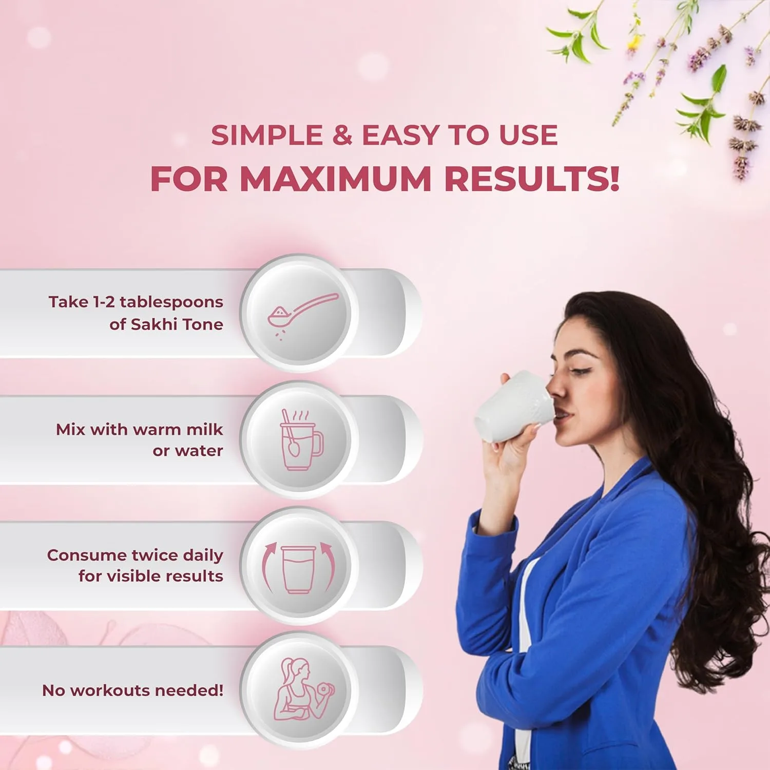 SAKHI TONE is a natural weight gain supplement for women, promoting better nutrient absorption and improved digestion. Achieve your desired physique safely and effectively.