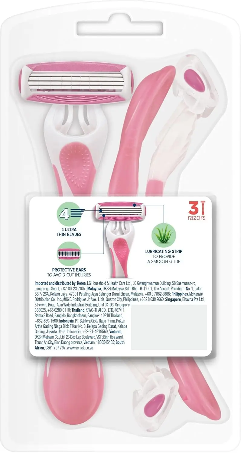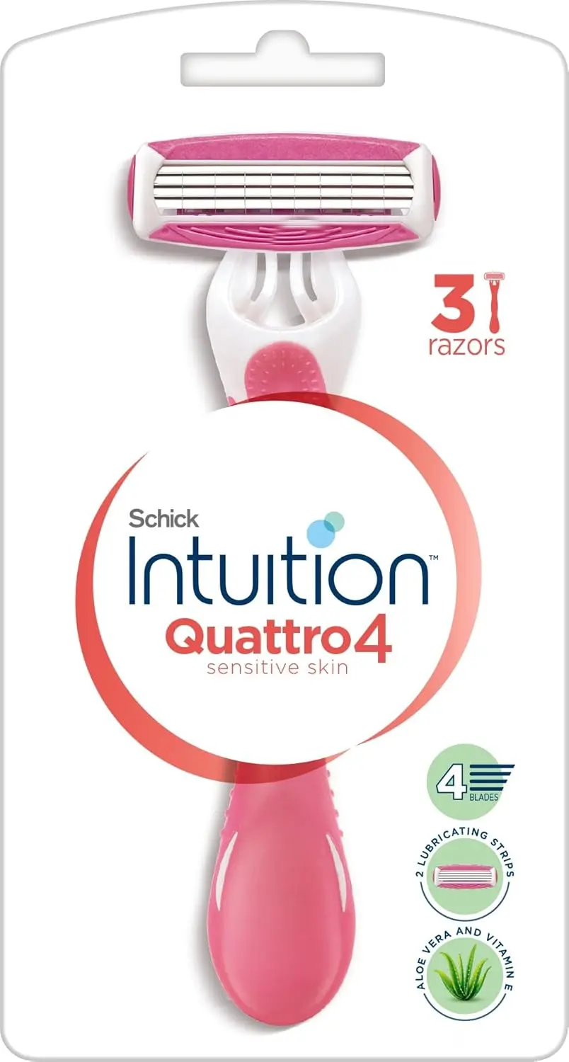 Experience the ultimate smooth shave with Schick Quattro For Women Disposable Razors. Designed with your comfort and convenience in mind, these razors feature 4 ultra-thin blades with a diamond coating, delivering incredible closeness and a long-lasting shave. Say goodbye to daily shaving routines and confidently skip a day! The convenient disposable format makes them perfect for everyday use, whether you’re at home or on the go for your travel shaving needs. Experience the difference of 4 ultra-thin, wire-wrapped blades that glide effortlessly, providing a shave so smooth you can skip a day with less irritation. Our razors are designed to prioritize your skin’s health. Dual conditioning strips, enriched with soothing aloe and nourishing Vitamin E, provide a smooth glide, leaving your skin feeling soft and moisturized. The specially designed 4-blade pivoting head effortlessly hugs every curve and contour of your body, ensuring no hair is missed. Enjoy a comfortable and precise shave that leaves you feeling confident and ready to take on the day. These razors are a must-have addition to your shaving routine. Get yours now!