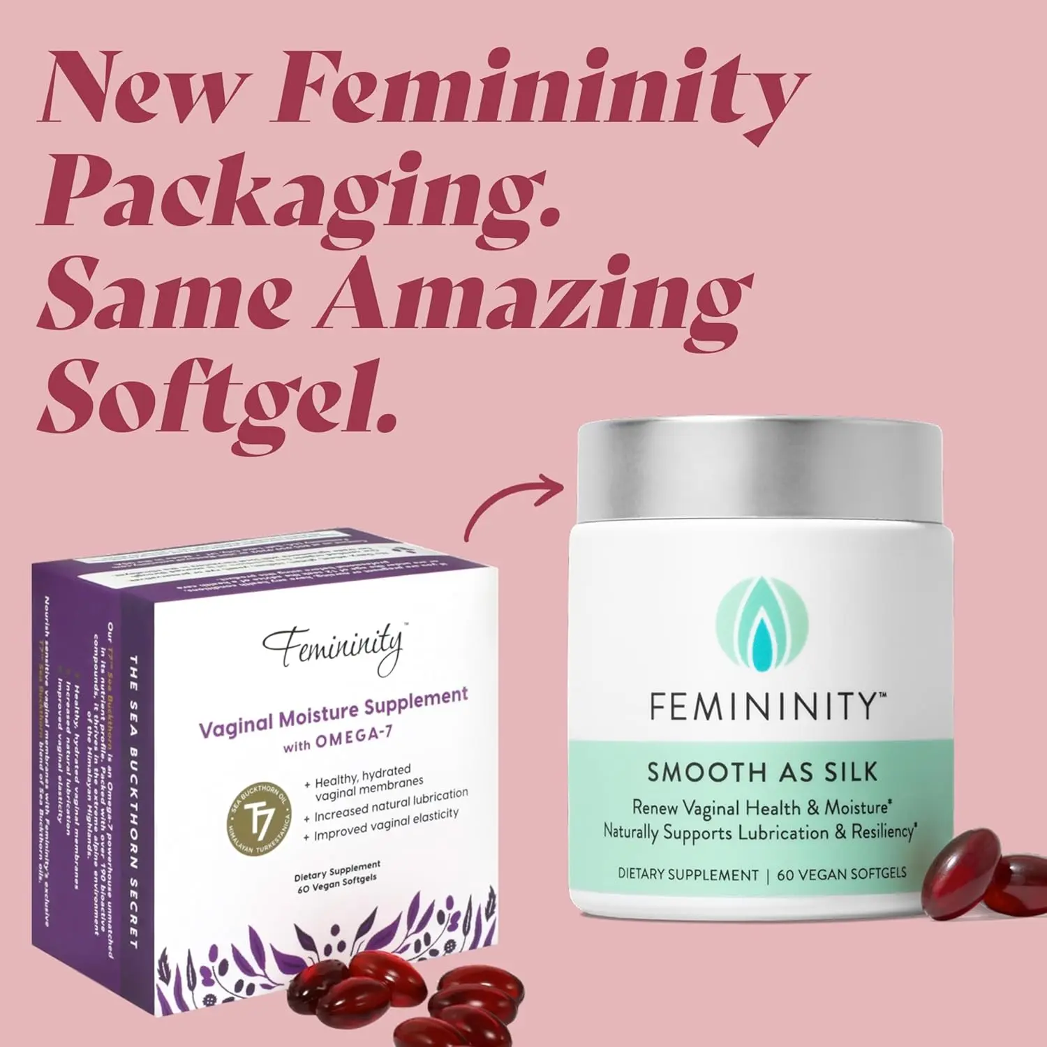 Say goodbye to vaginal dryness with Femininity’s plant-based Omega 7 supplement! This natural formula is designed to combat vaginal dryness, irritation, burning, and painful intimacy, helping you reclaim your comfort and confidence. Femininity utilizes the power of 100% T7 Premium Himalayan Sea Buckthorn oil, a clinically studied ingredient proven to improve feminine dryness and related issues. But the benefits don’t stop there! The potent ingredients in Femininity also work to fortify your skin, hair, and nails, giving you a radiant glow from the inside out. Feminine dryness can be triggered by various factors, including menopause, medications, stress, and more. Femininity offers a natural and effective solution to rejuvenate this sensitive area for many women. Our commitment to quality is unwavering. We source only the purest and most potent ingredients available. Femininity is all-natural, PETA certified cruelty-free and vegan, and free from GMOs and gluten. Made with pride in the USA, our Himalayan Sea Buckthorn ingredients undergo rigorous double testing by independent laboratories to guarantee their purity and potency. You can trust that you’re getting the very best. Please note that some variance in color is normal and reflects the minimal processing of our Sea Buckthorn oils during extraction. This process ensures maximum levels of bioactive compounds are preserved. Additionally, cold or frozen soft gels may temporarily become opaque, but they will return to their normal appearance at room temperature. Experience the natural relief and enhanced well-being that Femininity provides! It’s time to embrace comfort and rediscover your confidence.