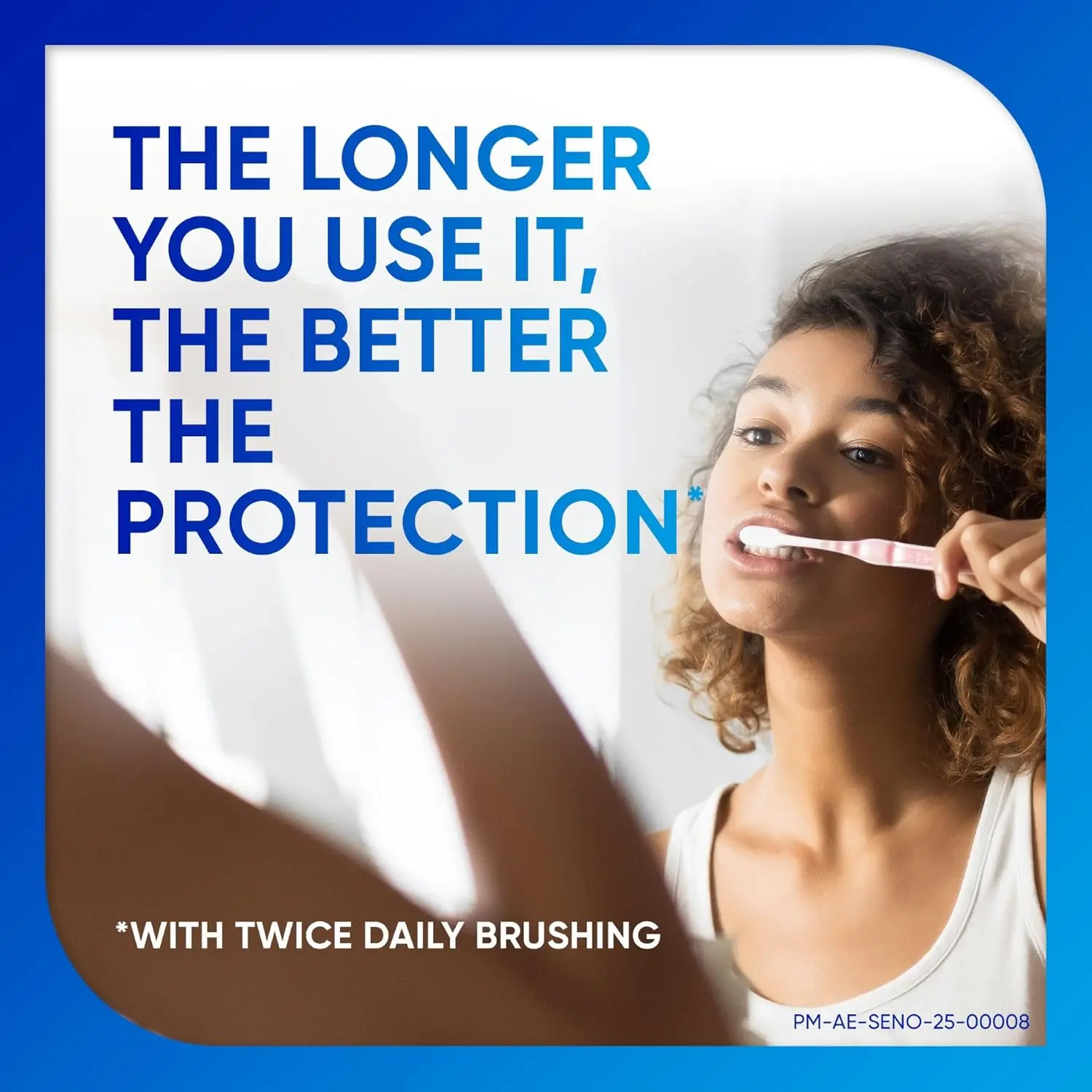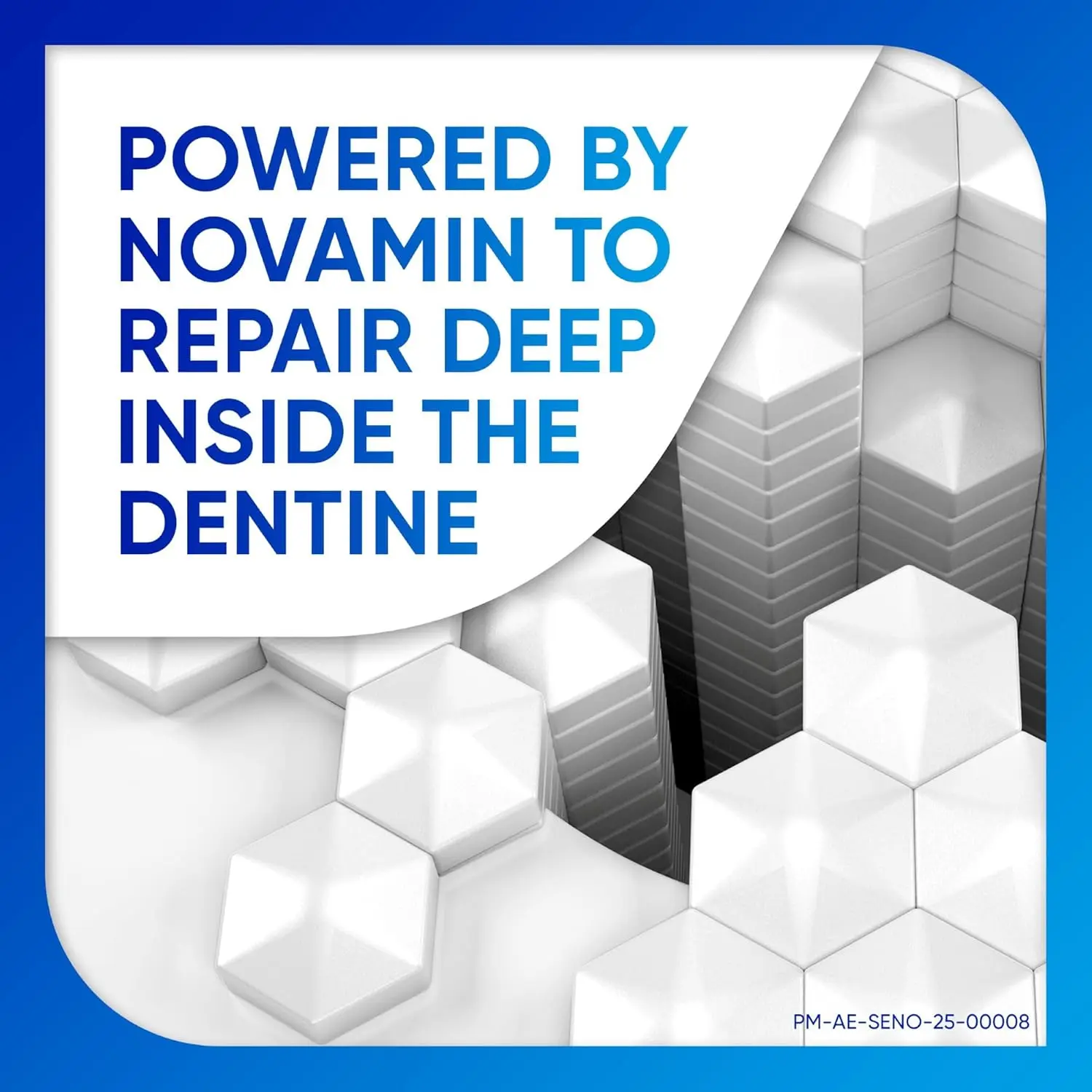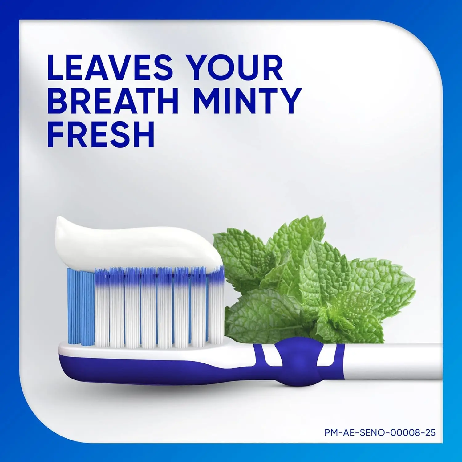 Experience lasting relief from tooth sensitivity with Sensodyne Advanced Repair & Protect Extra Fresh toothpaste. This advanced formula is designed to not only protect sensitive areas of your teeth but also actively repair them*. It forms a protective layer, helping to shield your teeth from the pain caused by hot, cold, sweet, or sour stimuli. The extra fresh minty flavor leaves your mouth feeling clean and invigorated, providing a refreshing start and end to your day. Make Sensodyne Advanced Repair & Protect Extra Fresh a part of your daily oral hygiene routine. Remember to brush twice daily for optimal and lasting sensitivity protection. This toothpaste is specifically formulated for adults and children 12 years and older. For best results, use as directed and consult with your dentist regularly to ensure your teeth and gums are healthy. Packaging may vary. This toothpaste will help protect your teeth, while keeping your mouth feeling fresh, all day.