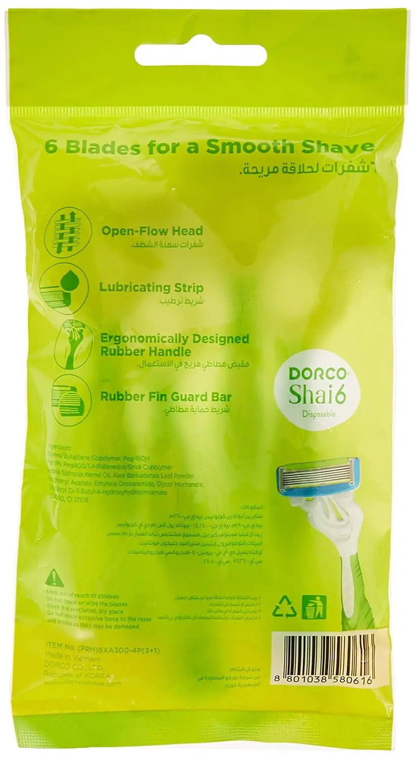 Experience a flawlessly smooth shave with Shai 6 Women’s Disposable Razors. This 4-count pack offers a convenient and hygienic solution for your hair removal needs. Each razor features 6 ultra-sharp blades designed to glide effortlessly over your skin, capturing even the finest hairs for a close and comfortable shave. The pivoting head adapts to the contours of your body, ensuring optimal contact and minimizing irritation. A lubricating strip enriched with moisturizing ingredients provides enhanced glide and helps protect your skin from dryness. The ergonomic rubber grip handle offers superior control and comfort, even in wet conditions. The open flow blade design allows for easy rinsing, preventing clogging and extending the life of the razor. Say goodbye to nicks, cuts, and razor burn, and hello to silky smooth skin with Shai 6. These disposable razors are perfect for travel, gym bags, or everyday use. Enjoy a consistently smooth and comfortable shaving experience with the advanced technology of Shai 6. The lubricating strip dispenses nourishing elements onto the skin, offering an enhanced shaving experience. With its pivoting head, the razor effortlessly follows the curves of your body, granting a close and comfortable shave. The rubber grip handle delivers a firm grasp, even when your hands are wet, assuring accuracy and confidence during each shave. The open-flow blade architecture permits easy rinsing, deterring clogging and prolonging the life span of the razor. Shai 6 razors are your go-to option for accomplishing silky-smooth skin without the hassles of nicks or cuts. These disposable razors are ideal for travel, fitness centers, or daily utilization.