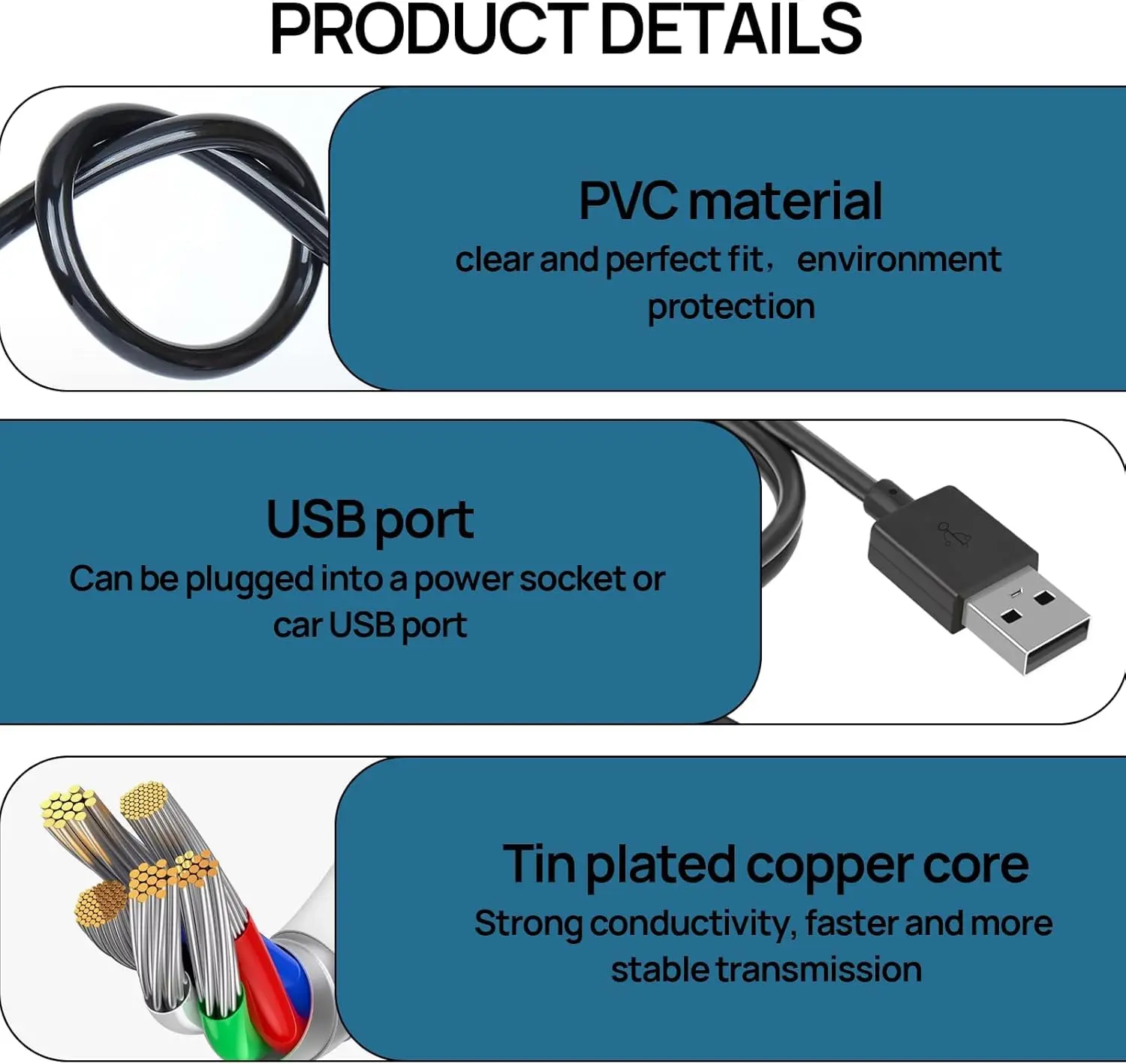 • High-quality pure copper conductor.