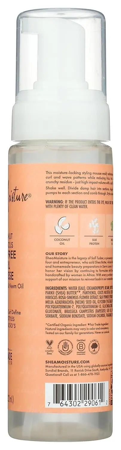 Shea Moisture Curl Mousse, infused with Coconut Oil, deeply moisturizes and defines wavy, curly hair. Achieve frizz-free, effortless styles with enhanced curl memory.