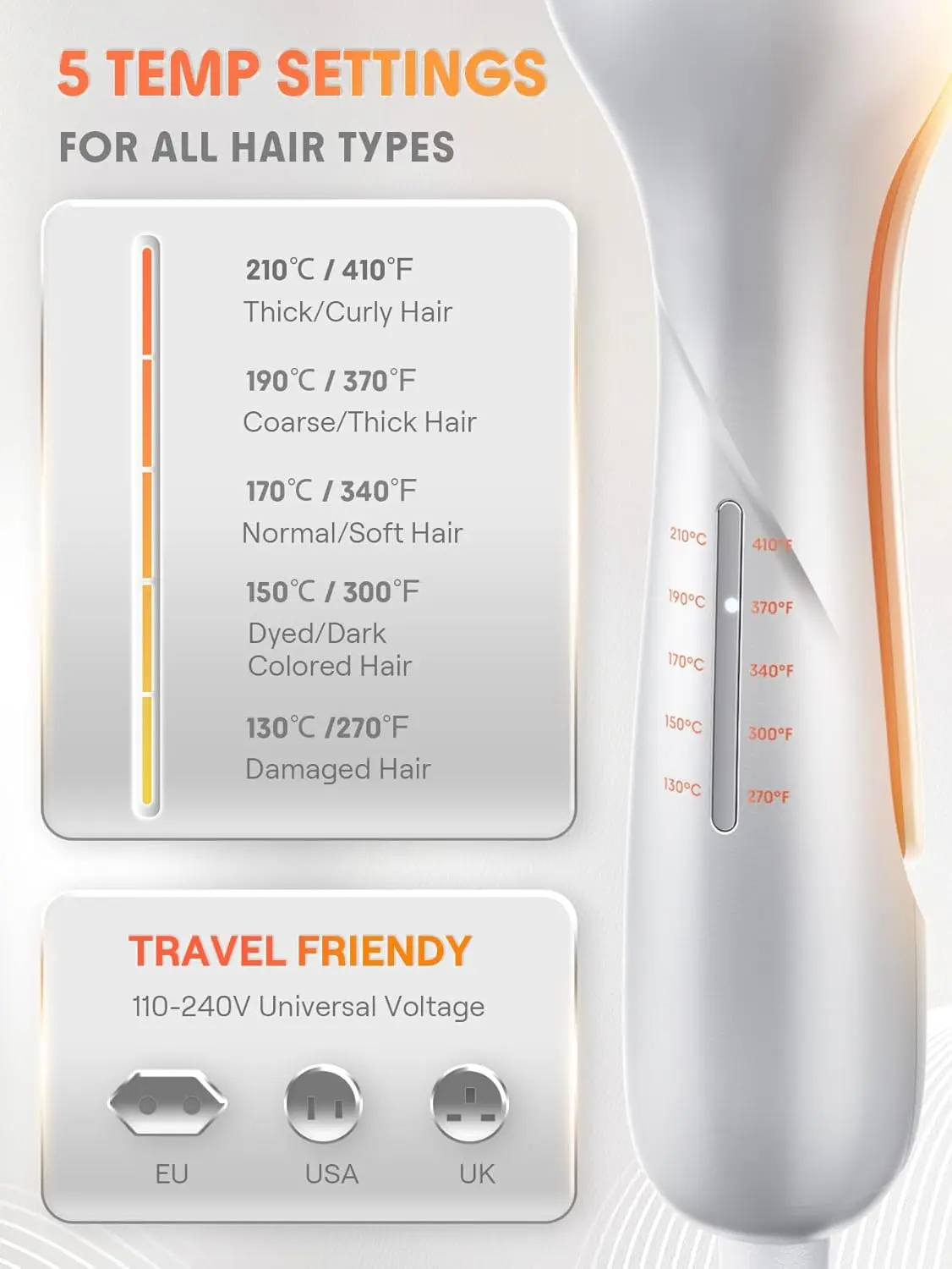 Get effortlessly chic beach waves with the SHEGLAM Curling Iron! This innovative styling tool is designed for quick and easy use, even for beginners. Create beautiful, voluminous curls in minutes thanks to the unique dual-barrel design, perfect for medium to long hair. The S-shaped curve and wider plates ensure even heat distribution for long-lasting style that lasts all day. With 5 adjustable temperature settings and a smart 7-second timer, you can customize your look for any hair type. The built-in timer alerts you when styling is complete, preventing over-heating and damage. This curling iron also features advanced protection with 50 million negative ions to smooth frizz and reduce static, leaving your hair smooth, shiny, and healthy. The ceramic-coated plate with GLOSS PRO coating further safeguards your hair from heat damage. Safety is a priority with the anti-scald design, providing complete insulation to protect your fingers and skin. The dual voltage compatibility (110-240V) makes it the perfect travel companion, allowing you to achieve gorgeous beach waves wherever you go. Say goodbye to complicated styling routines and hello to quick, beautiful curls with the SHEGLAM Curling Iron!