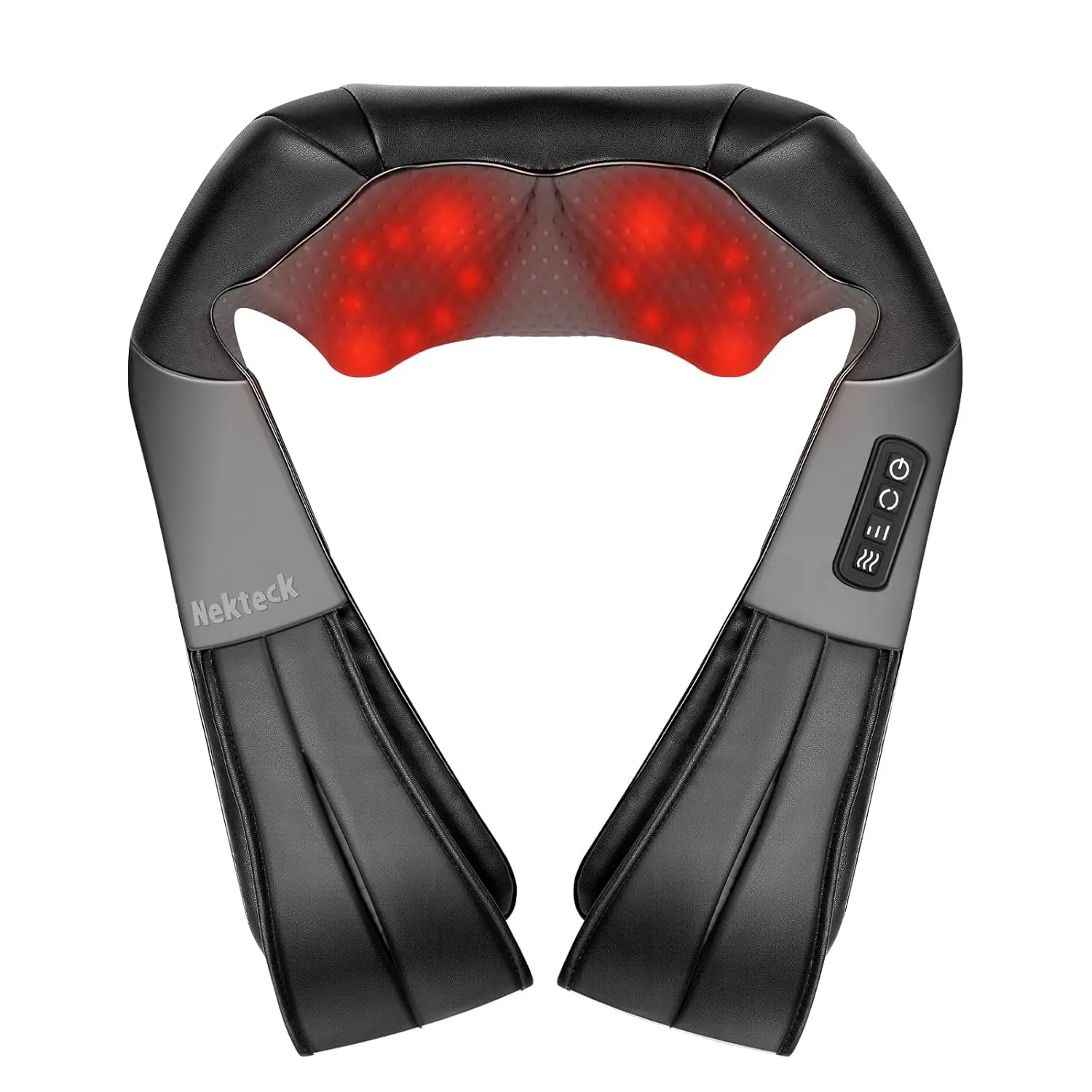 Experience deep relaxation and relief from muscle soreness with the Shiatsu Neck Back Massager with Heat. This powerful massager features 8 deep-kneading Shiatsu massage nodes that target key pressure points in your neck, back, and shoulders, helping to alleviate muscle soreness, ease neck stiffness, eliminate cervical fatigue, and provide overall relaxation after a long and tiring day. The user-friendly design makes it easy and safe to use, featuring a built-in infrared advanced soothing heat function that improves blood circulation. For safety and peace of mind, the massager is equipped with a 15-minute overheating auto-shut off protection feature, which can also be manually turned off. Customize your massage experience with 3 adjustable speed strength levels, allowing you to personalize the pressure to effectively relieve muscle pain. The long handle straps are designed for easy adjustment of the massage position and intensity, ensuring you can target specific areas with precision. Crafted from durable and comfortable high-quality PU leather and breathable mesh fabric, the Nekteck back massager is not only easy to use but also simple to clean. The reversed zipper design adds to its convenience and longevity. This massager makes a great gift idea choice for your loved ones – mom, dad, husband, or wife. Its versatility makes it perfect for use at home, in the office, in the car, or while traveling. It comes with both an AC adapter and a Car adapter, all of which are UL listed for safety and reliability. Backed by a 1-year warranty and lifetime support from Nekteck, you can confidently gift this massager to your friends and family, knowing they’ll receive a high-quality product with excellent support. Enjoy the convenience and therapeutic benefits of a Shiatsu massage anytime, anywhere.