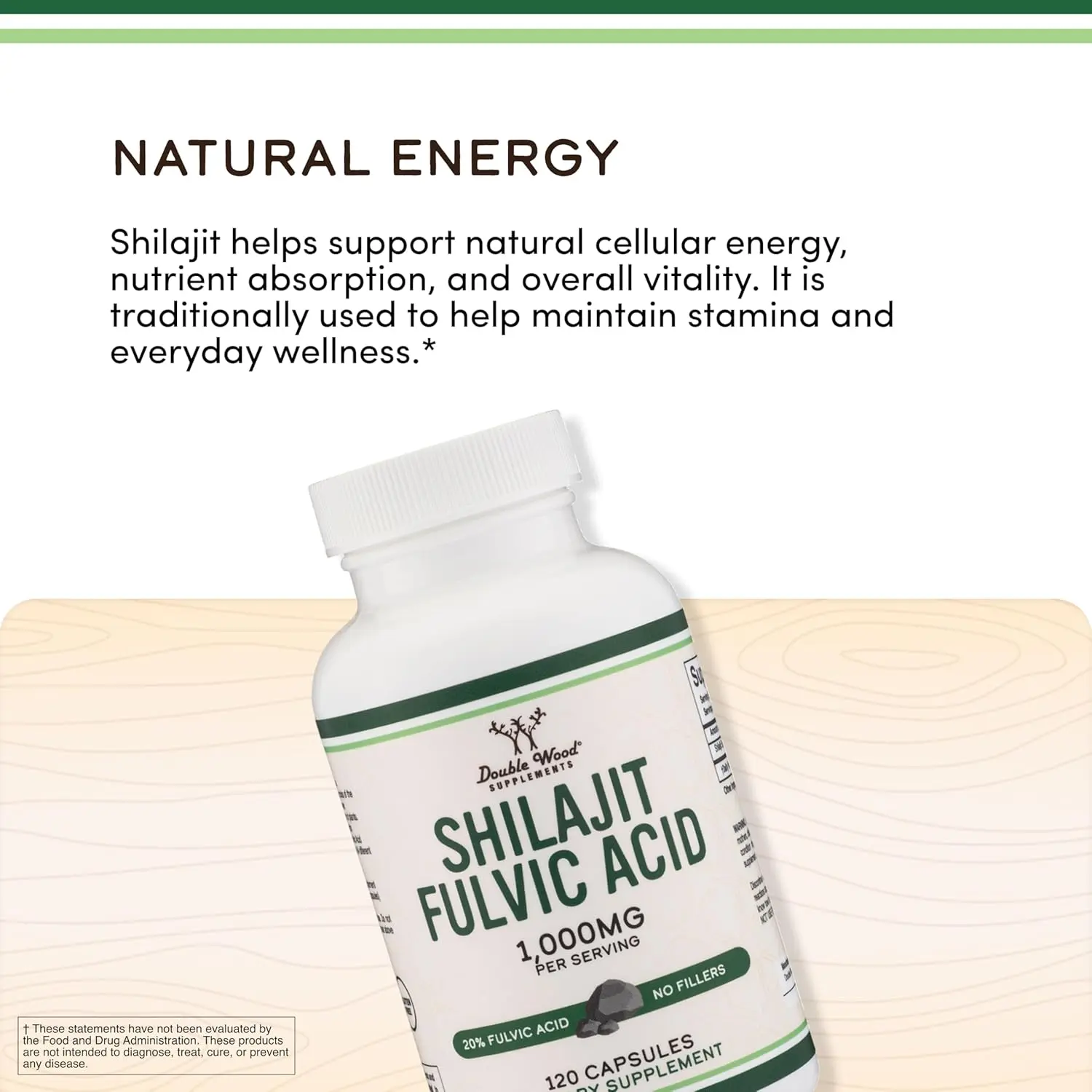 Unleash the power of the Himalayas with Double Wood’s Shilajit Capsules! This potent supplement is carefully crafted to deliver exceptional support for your overall well-being. Our Shilajit is a naturally occurring substance sourced from the pristine Himalayan mountains, renowned for its rich mineral content and powerful antioxidant properties. Each capsule is standardized to contain 20% Fulvic Acid, ensuring you receive a consistent and effective dose of this vital compound.