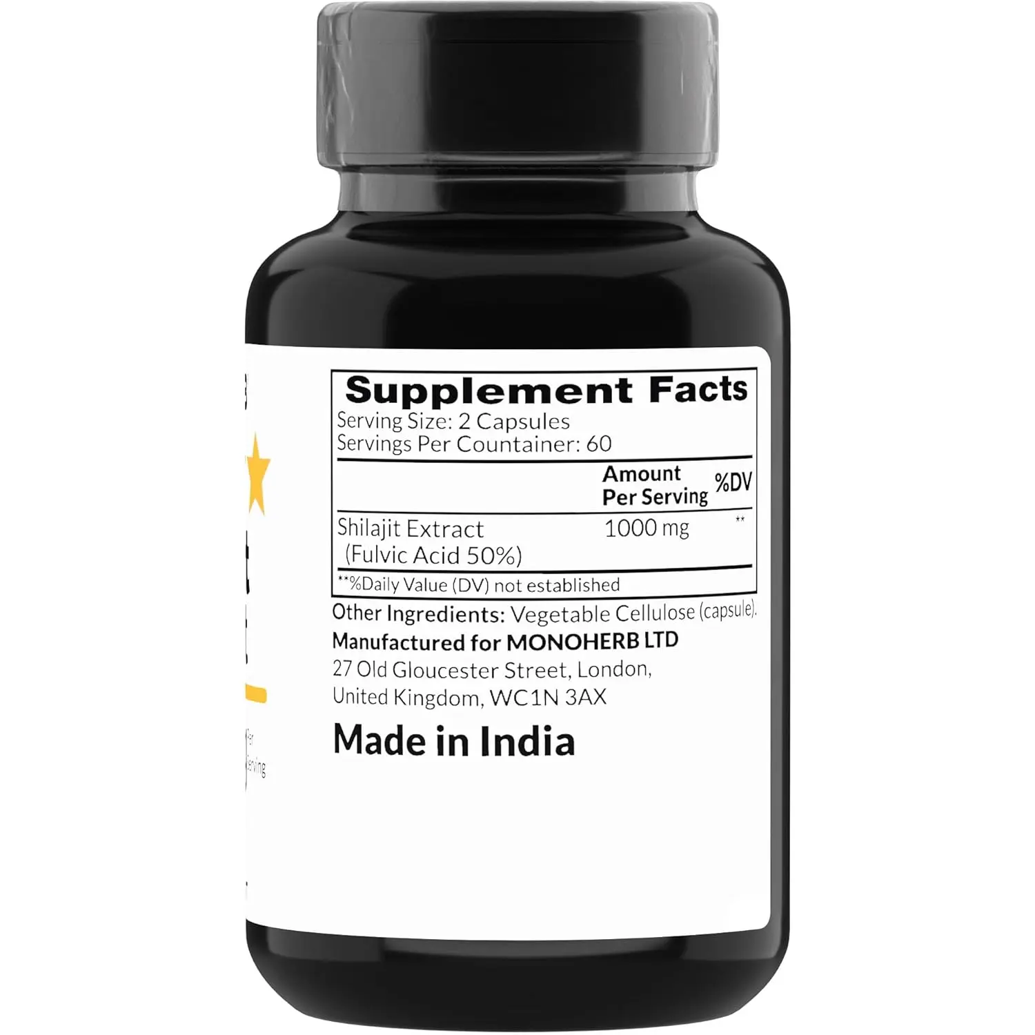 Unleash your peak potential with our Shilajit Extract! Each capsule delivers a potent 500mg dose of pure Shilajit, providing you with a natural and effective way to enhance your overall well-being. This carefully crafted formula, packaged in 120 vegan capsules, offers a convenient and sustainable supply for your daily needs. Shilajit has been used for centuries for its potential benefits, including maintaining physical potential, supporting mental health and brain function, protecting against aging, and even boosting testosterone levels in males. Whether you’re an athlete striving for peak performance or simply seeking to improve your cognitive function and vitality, our Shilajit Extract is the perfect addition to your daily routine. Made with the highest quality ingredients and free from common allergens and additives, you can trust that you’re getting a pure and potent supplement to support your health goals. Experience the power of Shilajit and unlock your full potential today! Our formulation is vegan/vegetarian-friendly and free from soy, eggs, dairy, nuts, gluten, GMOs, preservatives, additives and fillers.
