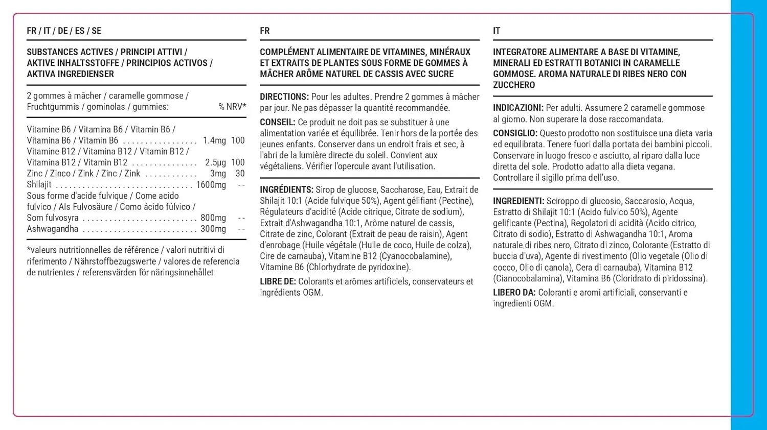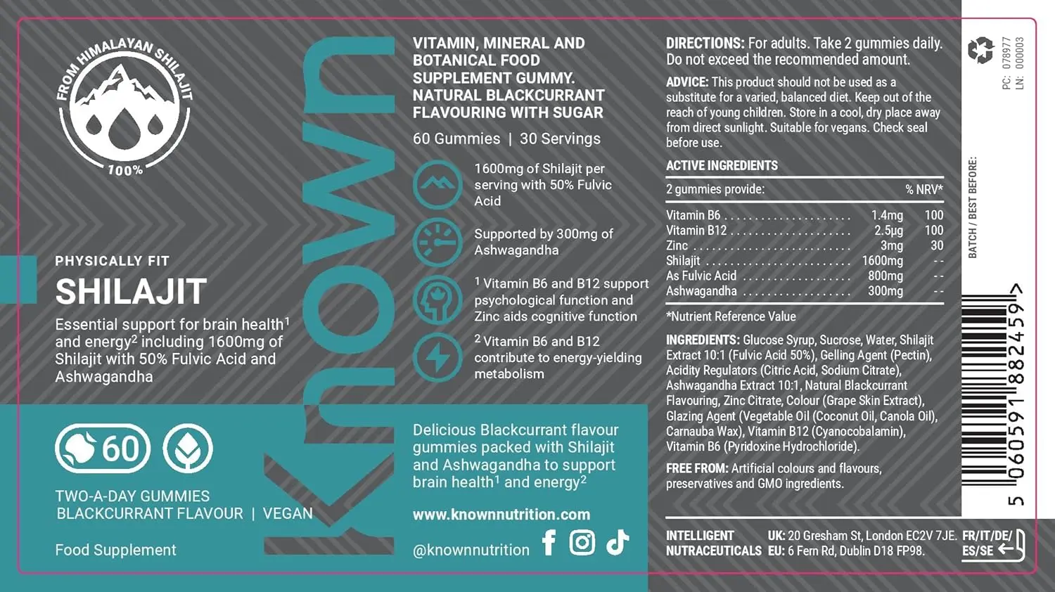 Unlock your peak performance with Shilajit Gummies! Each serving delivers a potent 1600mg of pure Himalayan Shilajit, standardized to 50% fulvic acid, amplified by the adaptogenic power of ashwagandha. These delicious blackcurrant flavored gummies are more than just a treat; they’re a comprehensive energy and wellness solution. Infused with Vitamin B6 and B12, these gummies contribute to normal energy generation and help maintain a healthy daily energy balance, as recognized by EFSA. For those seeking immune support, the inclusion of Vitamin B6, Vitamin B12, and Zinc work synergistically to bolster normal immune function, also substantiated by EFSA. Crafted with natural blackcurrant flavor, these gummies are a delightful and convenient way to incorporate the benefits of Shilajit into your daily routine. Suitable for both vegan and halal diets, you can enjoy these gummies knowing they align with your dietary choices. Made to the highest standards and BRC certified, these Shilajit Gummies offer quality you can trust. Experience the difference and elevate your well-being today!