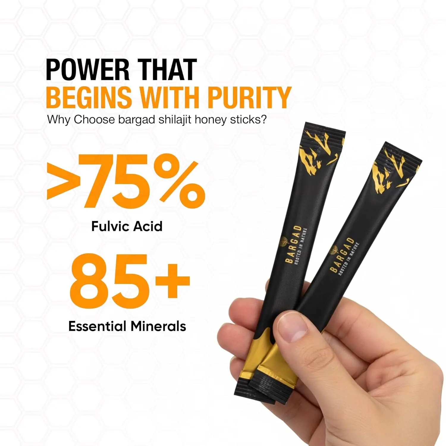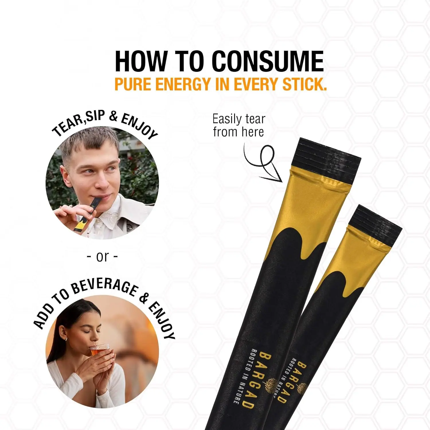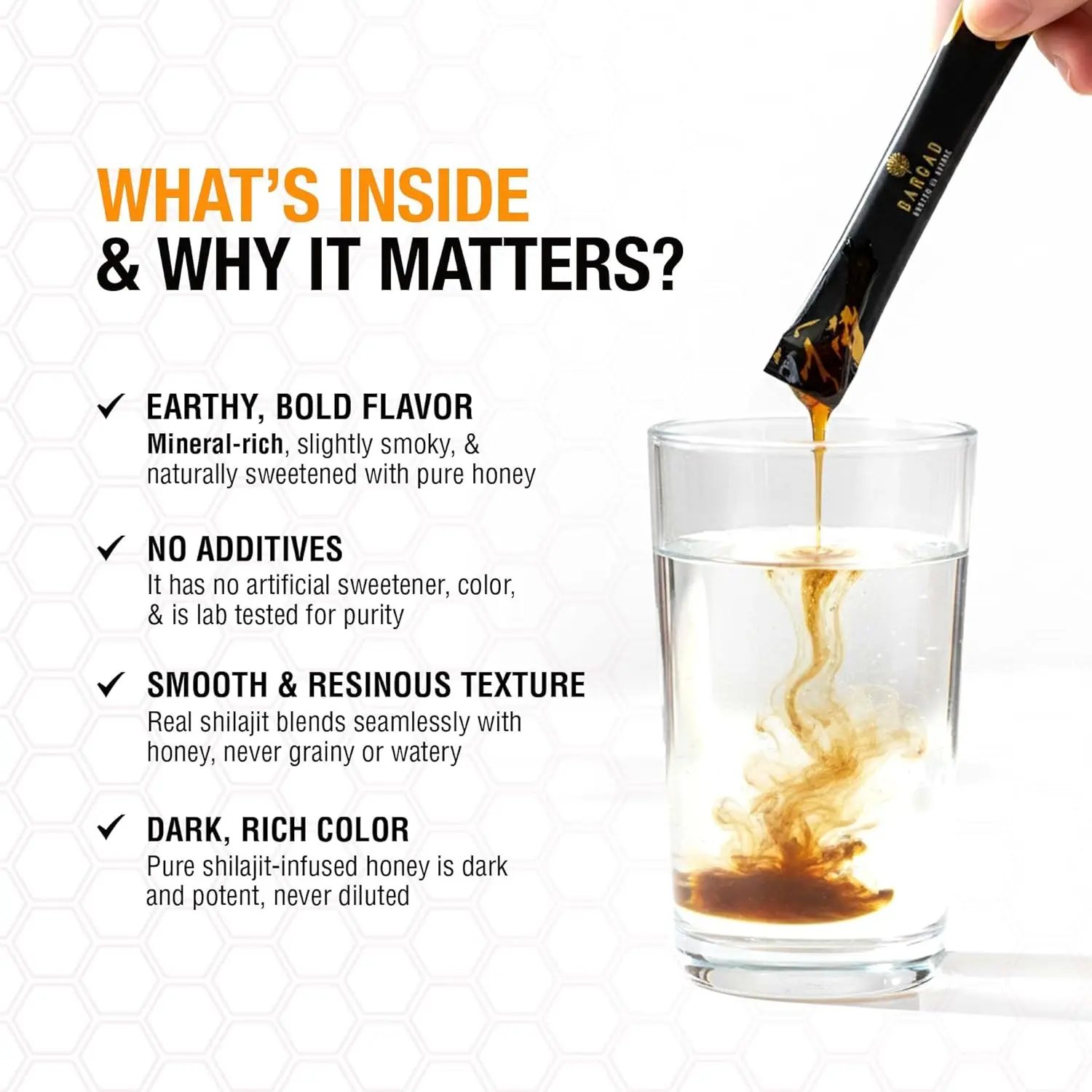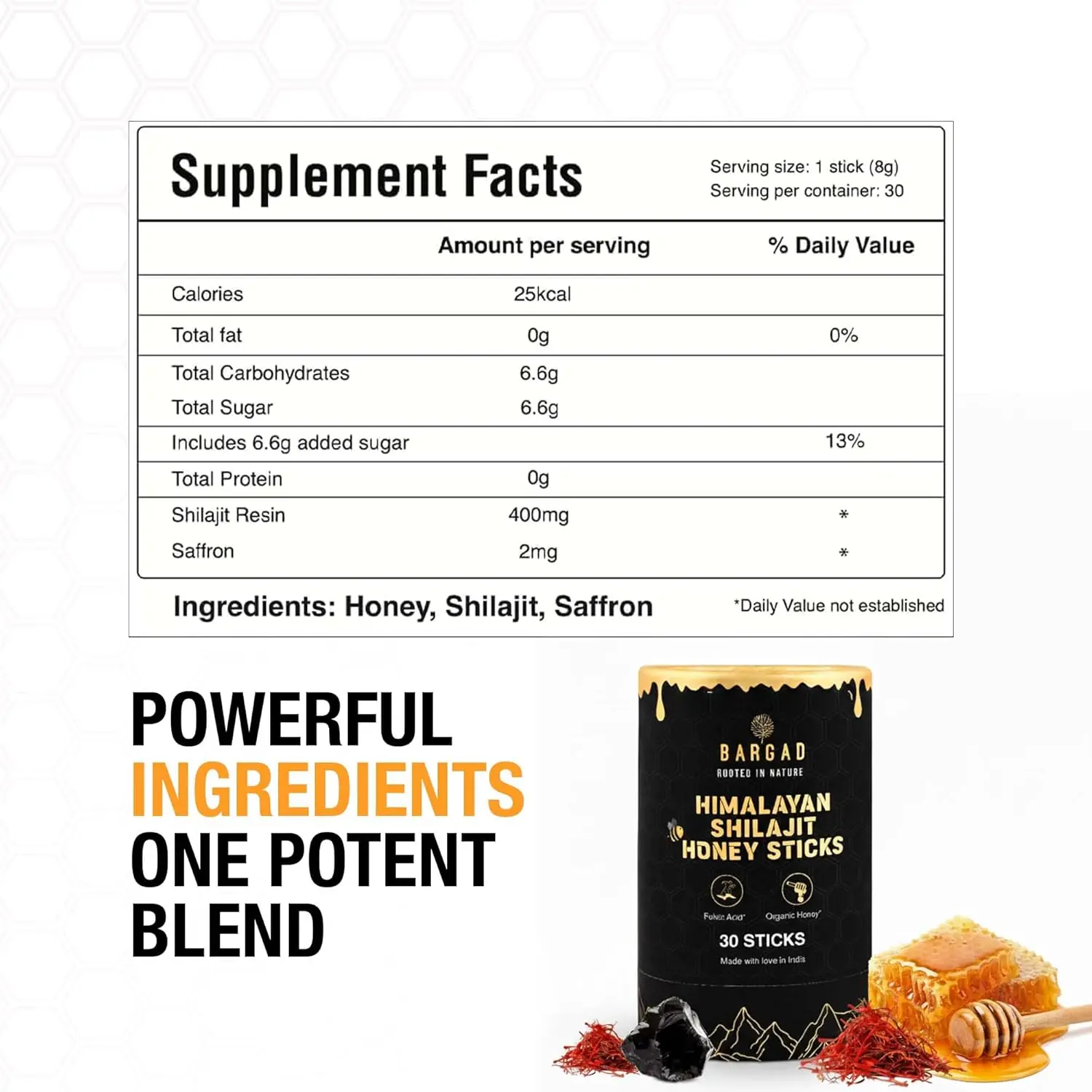 Experience the power of nature’s goodness with our Shilajit Honey Sticks with Saffron. This unique blend combines the ancient wisdom of Himalayan Shilajit, the sweetness of pure honey, and the luxurious touch of saffron, all conveniently packaged in easy-to-use sticks. Each stick is a potent dose of energy, vitality, and overall well-being. Shilajit, a mineral-rich substance sourced from the pristine Himalayan mountains, has been revered for centuries for its rejuvenating properties. Honey, a natural sweetener, provides a delicious base and adds its own health benefits. Saffron, known as the “golden spice,” enhances the flavor and offers antioxidant support. These honey sticks are perfect for on-the-go energy, a natural boost before workouts, or a healthy addition to your daily routine. Embrace the natural power within. Each stick delivers a precise serving of this potent blend, making it easy to incorporate into your lifestyle. Enjoy the rich, complex flavor and experience the synergistic benefits of these three remarkable ingredients. Our Shilajit Honey Sticks with Saffron are crafted with care, using only the highest quality ingredients. We source our Shilajit responsibly and ensure its purity and potency. The honey is carefully selected for its delicate flavor and natural goodness. And the saffron adds a touch of luxury and antioxidant power. This carefully crafted blend offers a convenient and delicious way to experience the revitalizing properties of Shilajit, the soothing benefits of honey, and the antioxidant support of saffron. Whether you’re seeking to boost your energy levels, enhance your overall well-being, or simply enjoy a delicious and healthy treat, our Shilajit Honey Sticks with Saffron are the perfect choice.