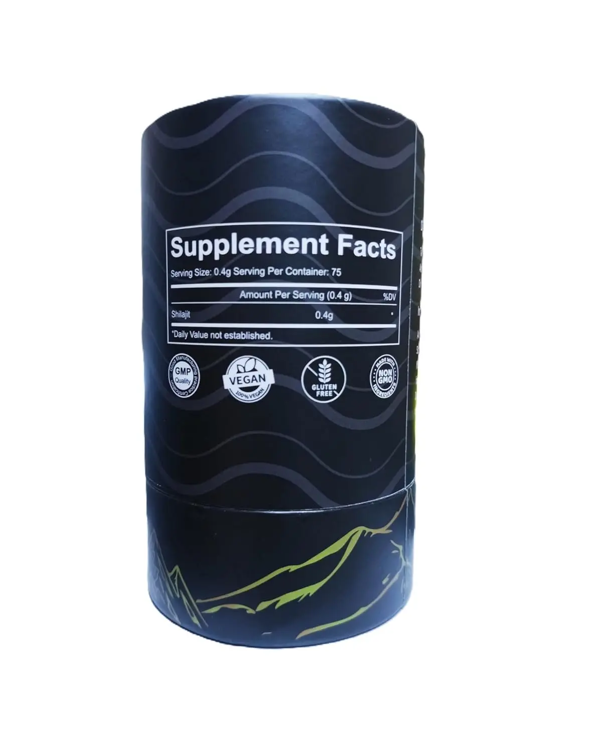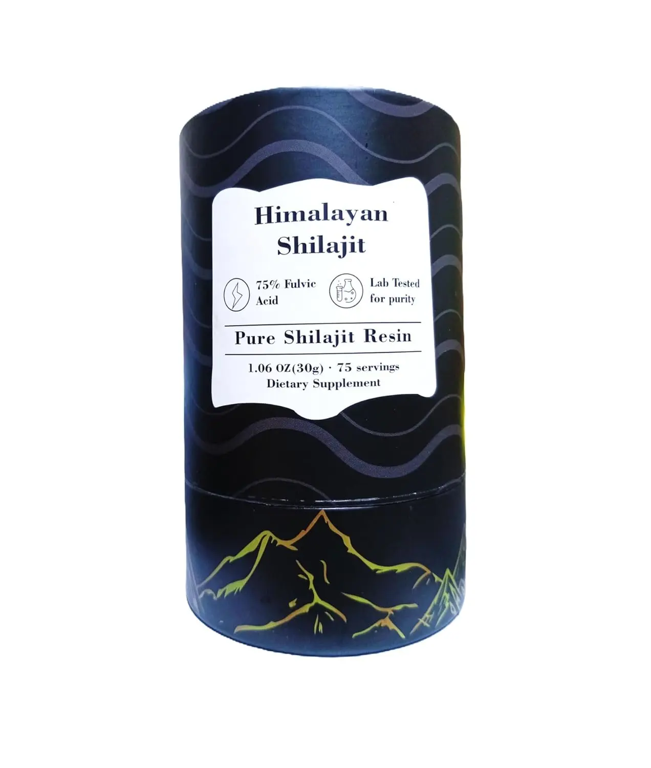 Experience the revitalizing power of Shilajit Resin, a potent natural substance sourced from the pristine heights of the mountains. Our premium Shilajit Resin boasts an impressive 75% Fulvic Acid content, ensuring maximum bioavailability and effectiveness. This meticulously crafted formula is ideal for anyone seeking to enhance their overall well-being, boost energy levels, and support cognitive function. Made with the highest quality standards, our Shilajit Resin is GMP quality, vegan, gluten-free, and non-GMO, catering to diverse dietary needs and preferences. Each 30g jar is rigorously lap tested for purity, guaranteeing that you receive only the purest and most potent Shilajit Resin available. Unlock your full potential with this ancient remedy, trusted for centuries to promote vitality and longevity. Our vegan Shilajit resin is carefully harvested and processed to preserve its natural properties. Integrate this powerful adaptogen into your daily routine and experience the difference. Embrace a holistic approach to wellness with our premium Shilajit Resin and discover the transformative benefits it offers. This natural supplement supports energy levels, cognitive function, and overall vitality. Free from gluten and GMOs. Trust in our rigorous testing and GMP-certified production to deliver a consistently pure and potent product. Elevate your wellness routine with our superior quality Shilajit Resin.