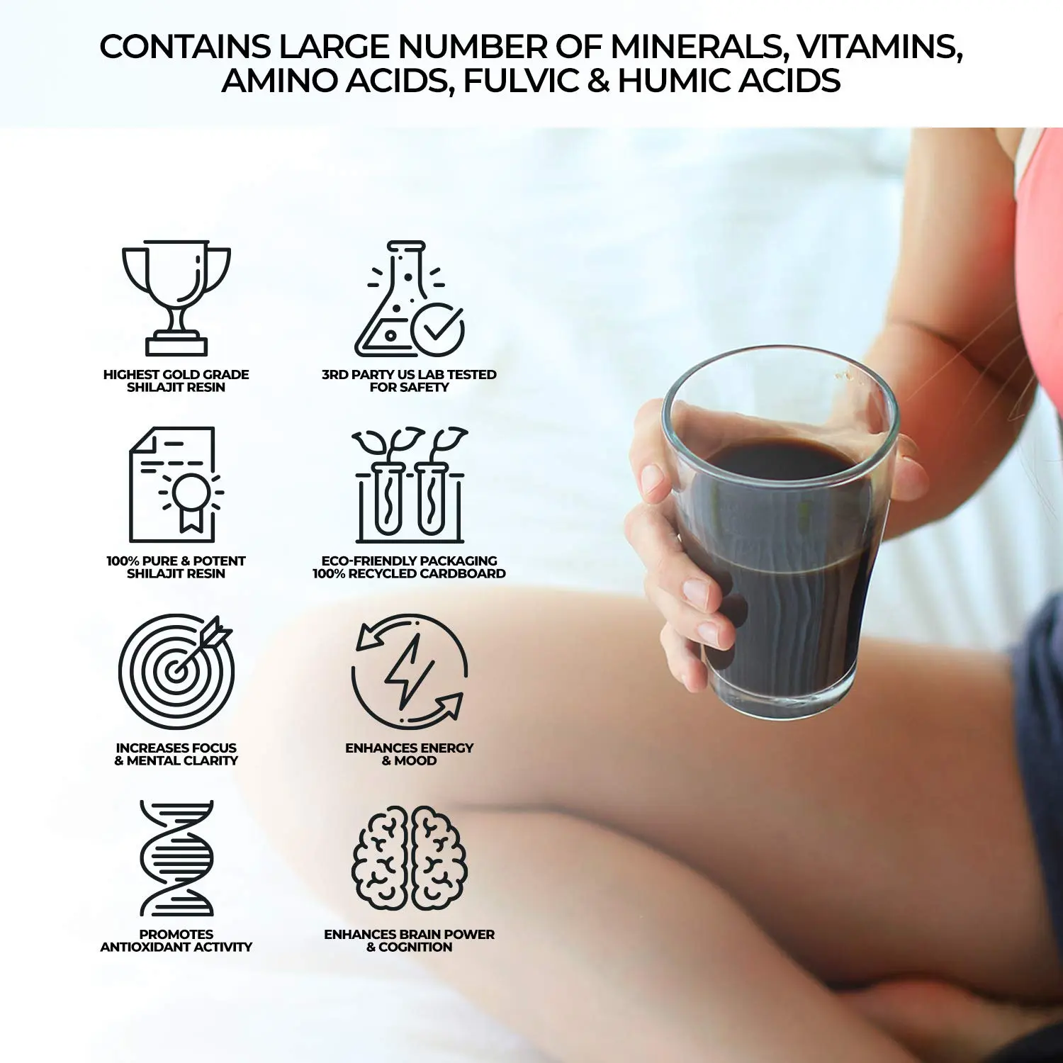 Experience the potent benefits of our premium Shilajit Resin, sourced from pristine high-altitude regions. This natural substance is meticulously harvested and purified to deliver a concentrated dose of essential nutrients. Our Shilajit is rigorously lab-tested for safety and efficacy by a USA third-party, cGMP certified, independent laboratory, guaranteeing purity and potency. Unlock your body’s full potential with over 72 fulvic and humic trace minerals, trace vitamins, and 18 amino acids. Shilajit is known to regulate and supercharge the immune system, promoting balance in cellular life. Boost your energy levels, stimulate your metabolism, and protect against unnatural oxidation, supporting overall health and vitality. Incorporate this powerful adaptogen into your daily routine and feel the difference. Our Shilajit resin is carefully crafted to provide optimal absorption, ensuring you receive the maximum benefits of this ancient Ayurvedic remedy. Embrace a healthier, more energized you with the trusted power of Shilajit. Feel the focus and vitality you always needed with this all natural ingredient. We are proud to bring you the best quality shilajit available on the market, lab tested and certified.